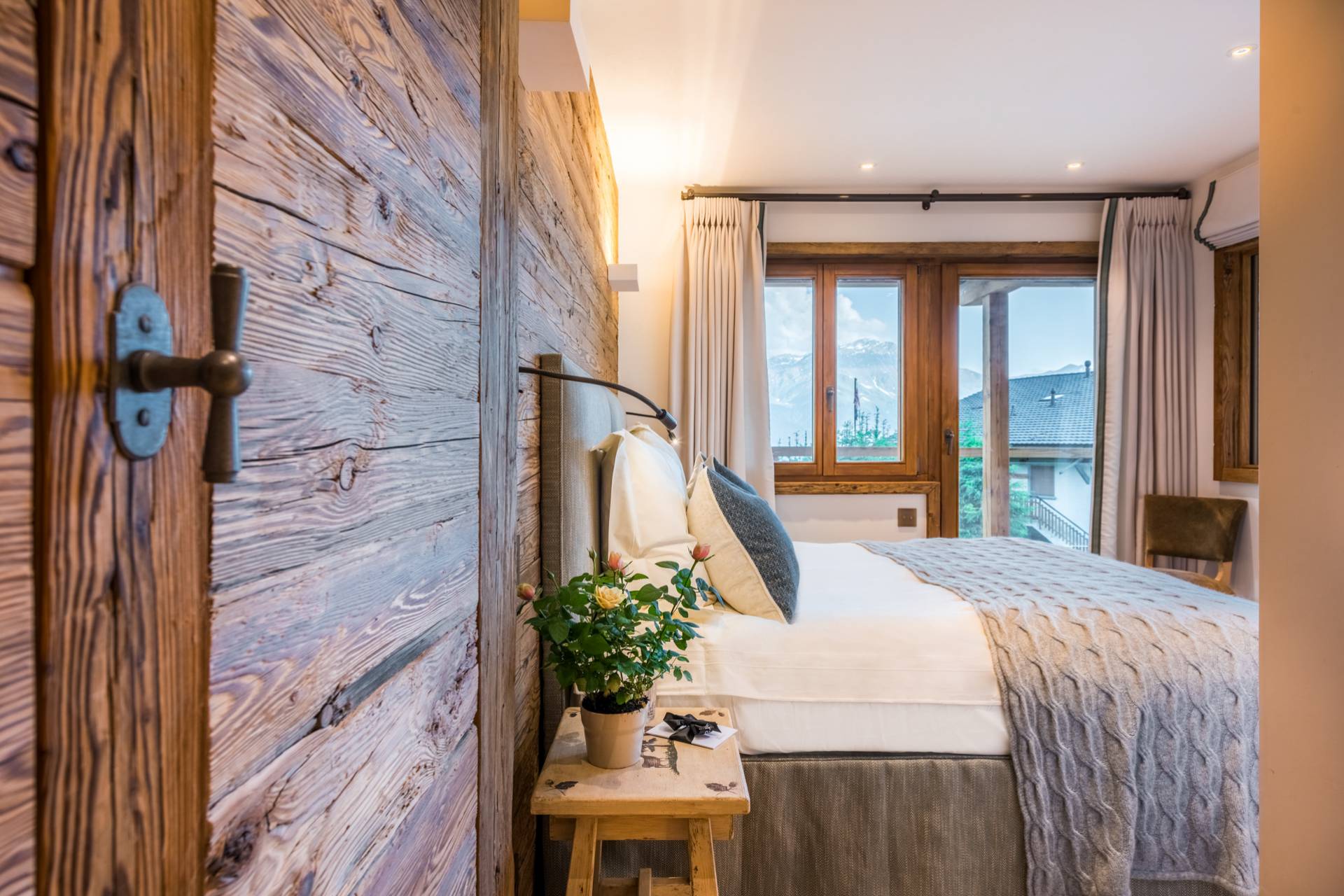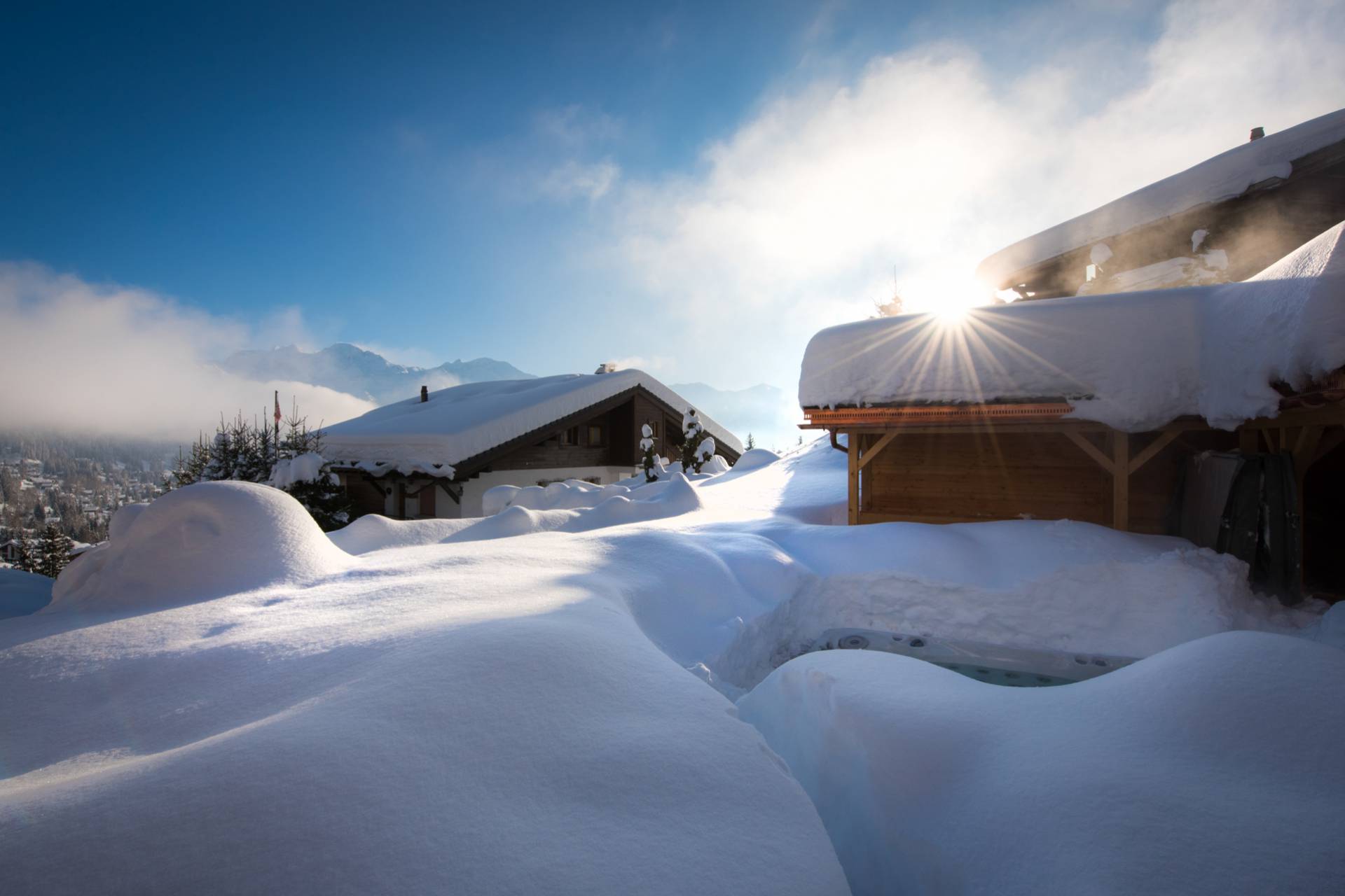 Perché sur les hauteurs de Verbier, à quelques centaines de mètres du domaine skiable des 4 Vallées, ce chalet de luxe au charme intemporel peut accueillir jusqu'à douze personnes. Avec sa façade de verre, ses deux vastes terrasses et son bain à remous extérieur, il constitue un lieu d'exception pour un séjour en famille ou entre amis dans les hautes montagnes du Valais.