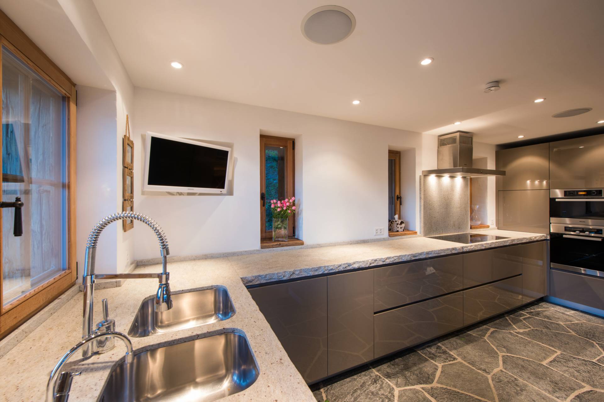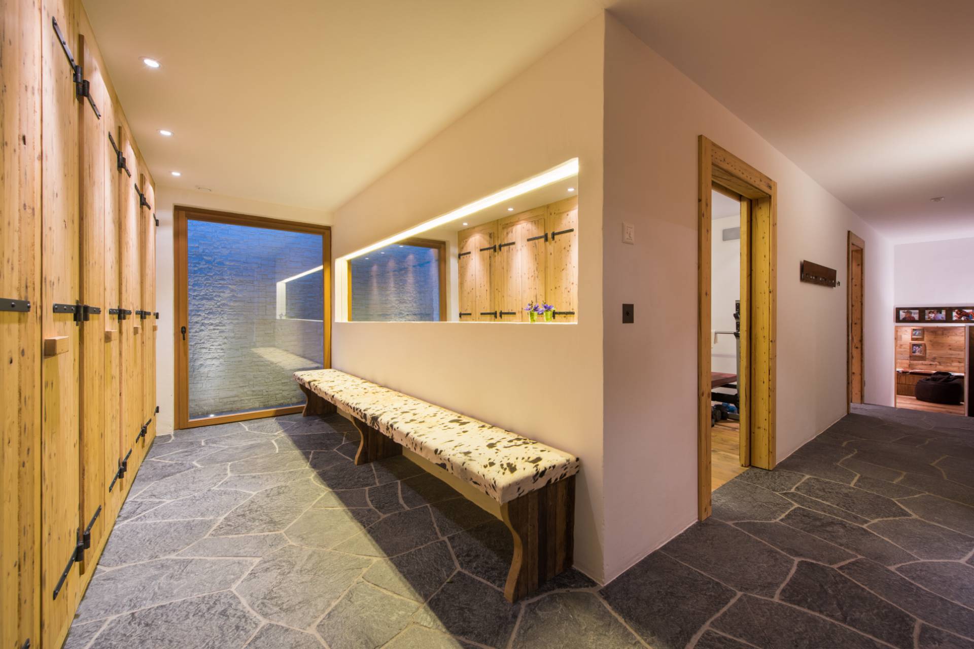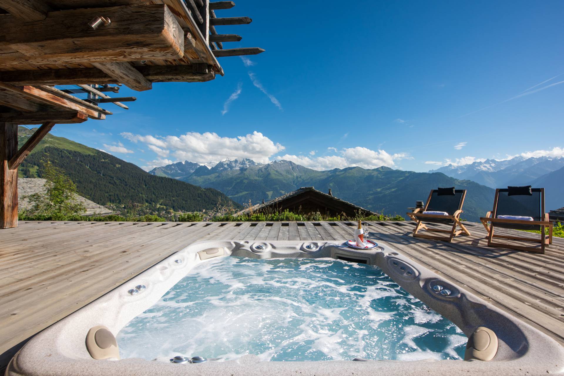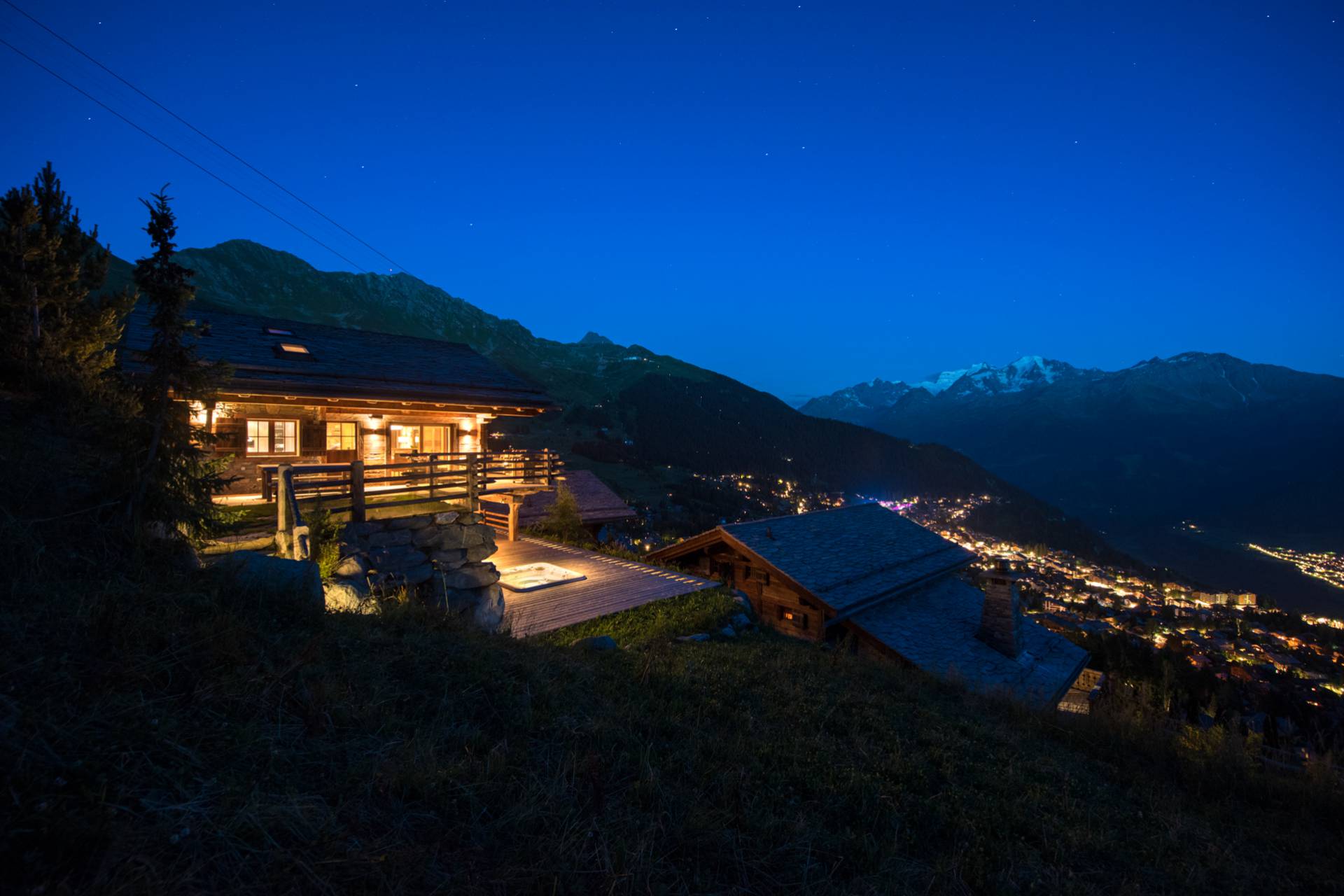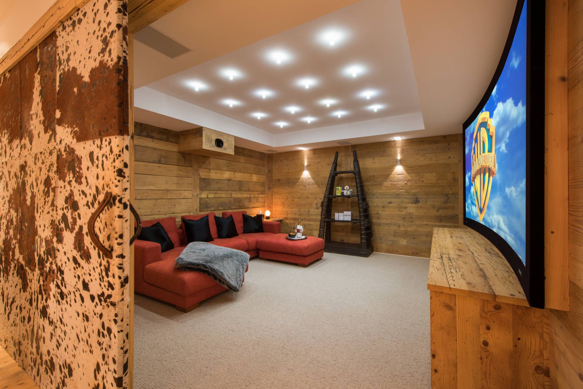 Aménagé sur quatre niveaux, il peut accueillir jusqu'à onze personnes dans un confort absolu. Au rez-de-chaussée, vous pourrez profiter d'un magnifique espace dédié au divertissement et au bien-être. Quoi de plus agréable que de pouvoir s'entraîner quotidiennement à la salle de gym et de se délasser après une grande journée sur les pistes dans le superbe sauna ? Peut-être le plaisir de regarder un bon film en famille dans la salle de cinéma privée pendant que les enfants s'amusent dans la salle de jeux sous la surveillance bienveillante de la jeune fille au pair, logée dans la chambre simple qui lui est réservée (avec salle de douche attenante) ? Ou bien plutôt celui de se baigner dans le somptueux jacuzzi extérieur, face au panorama spectaculaire des montagnes du Valais !