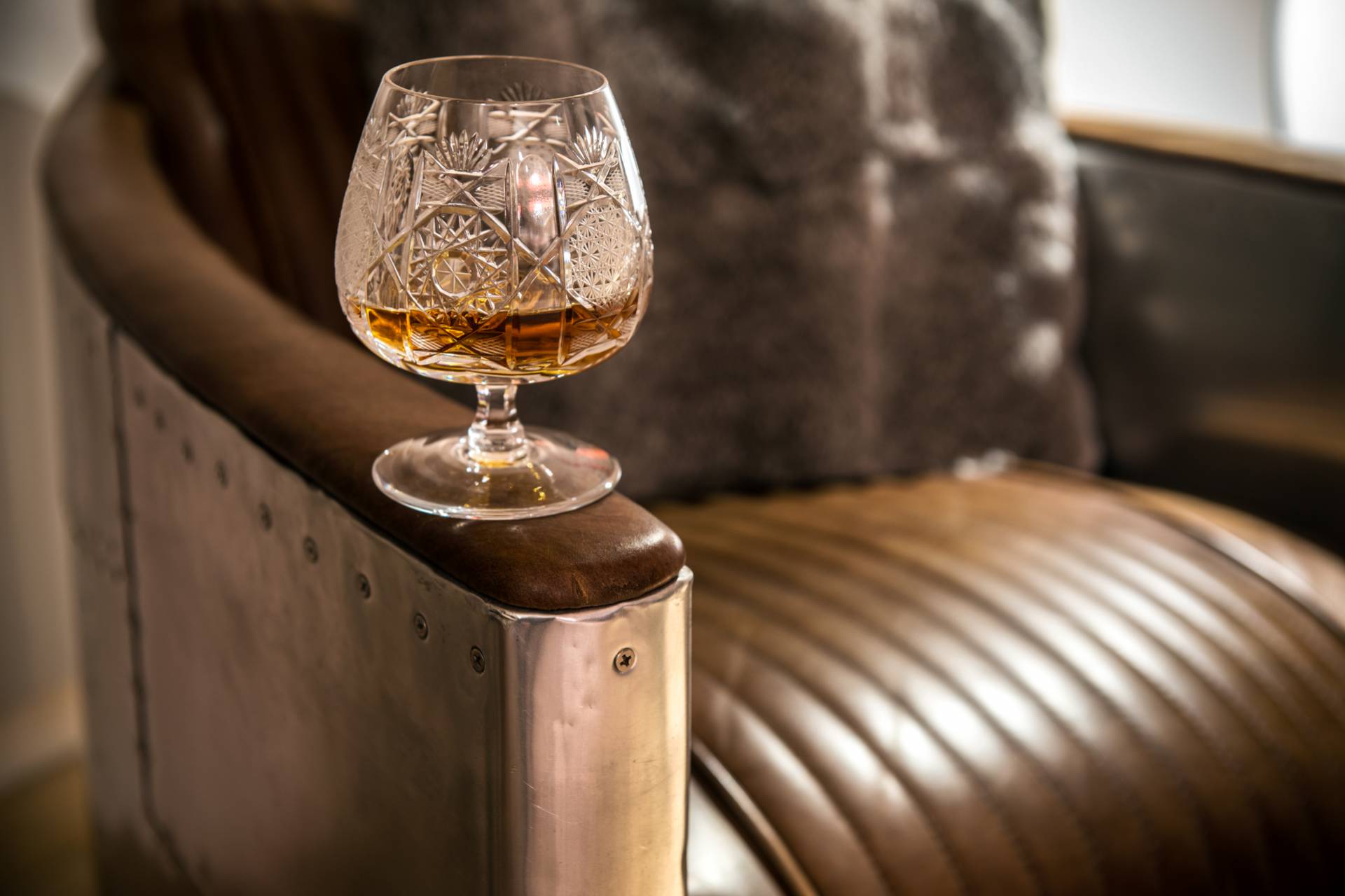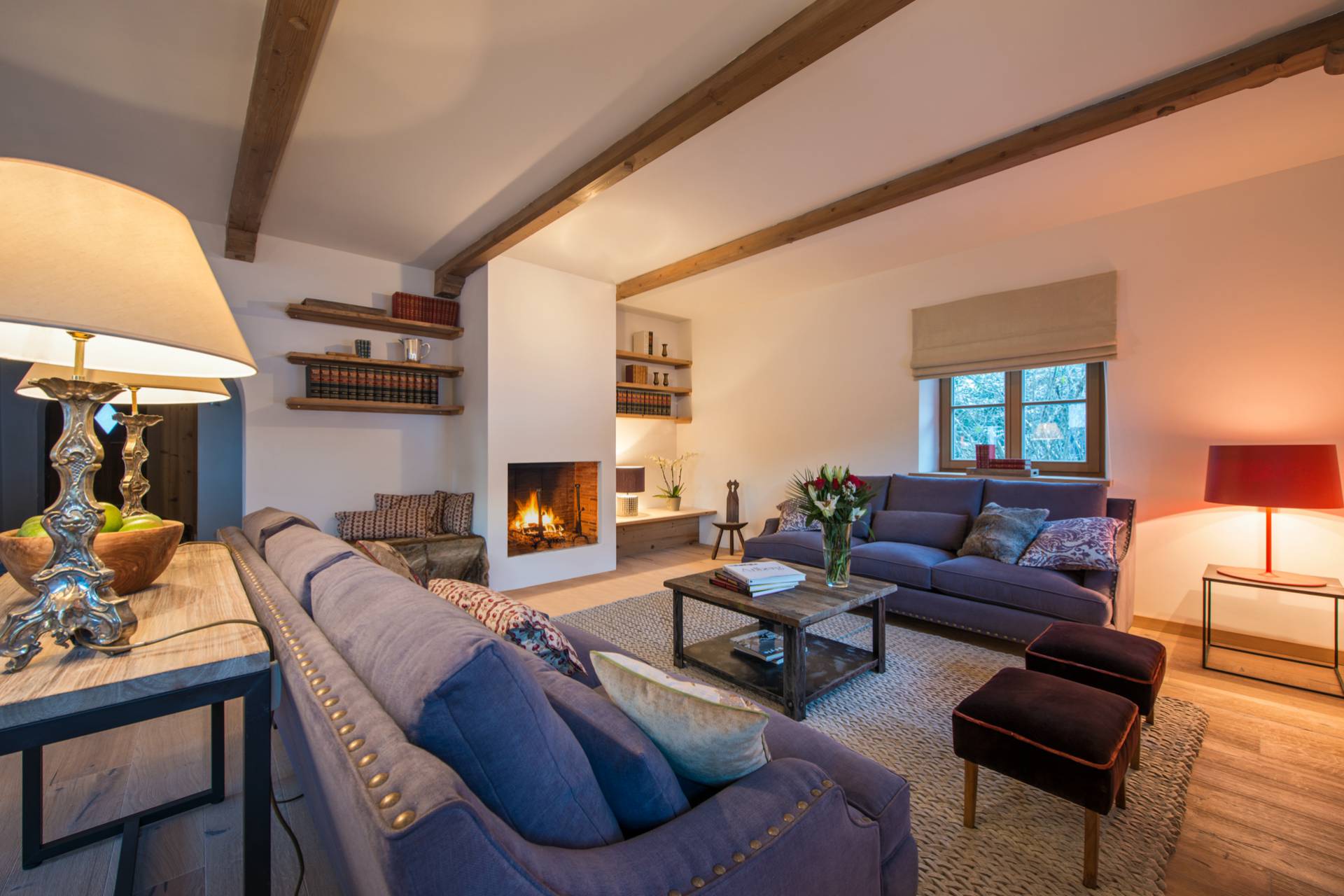 Le salon est conçu comme un lieu de détente et de partage. Il est divisé en deux espaces : vous pourrez apprécier vos retrouvailles en famille ou entre amis autour de la cheminée traditionnelle ou déguster un verre et lire dans les confortables canapés en cuir. Une seconde toile sur le thème du ski apporte une touche moderne à l’ensemble.