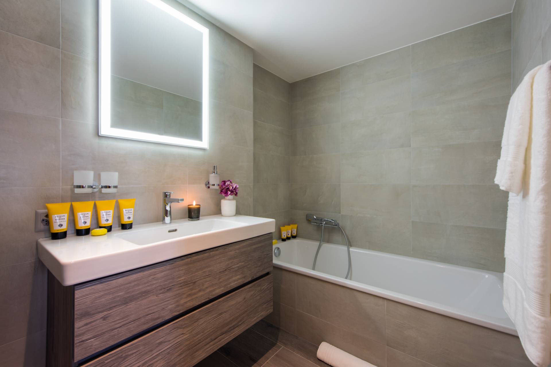 Quant à ceux qui logent aux étages supérieurs, ils auront plaisir à faire une halte bien méritée au rez-de-chaussée au retour d’une grande journée de glisse. C’est là que se situe le bain de vapeur où vous aimerez vous relaxer après l’effort.