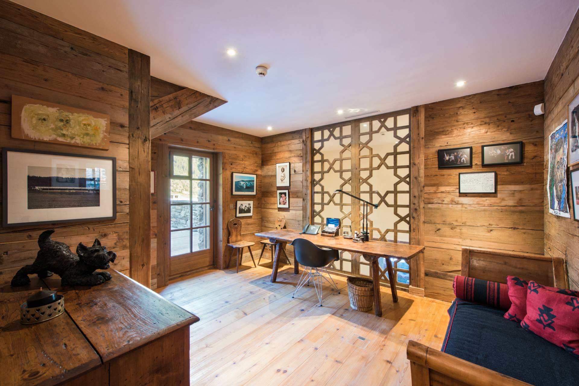 Le quatrième et dernier étage de cette extraordinaire propriété abrite un bureau et une suite parentale. Celle-ci est admirablement aménagée, chauffée par une belle cheminée et dotée d’une salle de bain au décor élégant. Ses occupants bénéficieront d’une vue splendide sur les pistes depuis leur balcon privé.