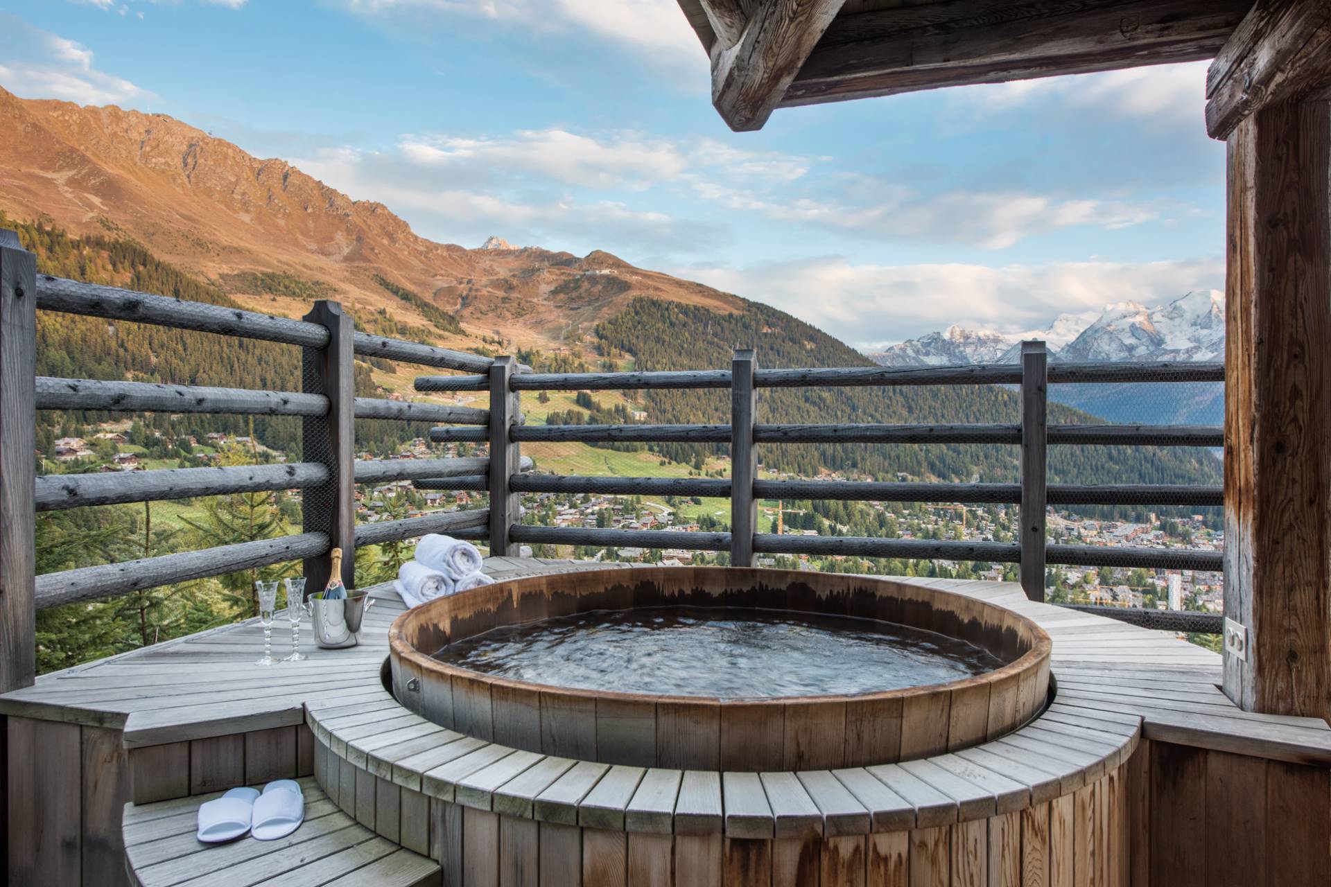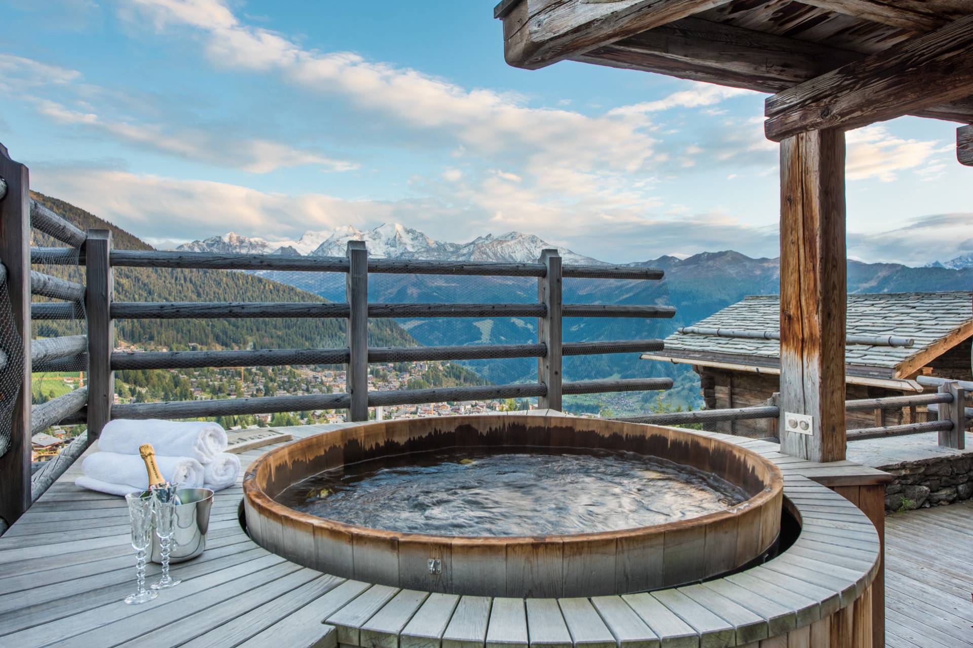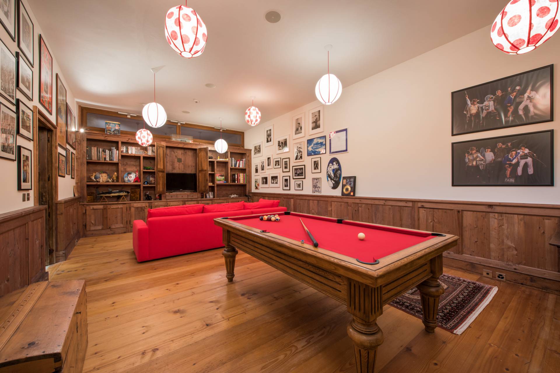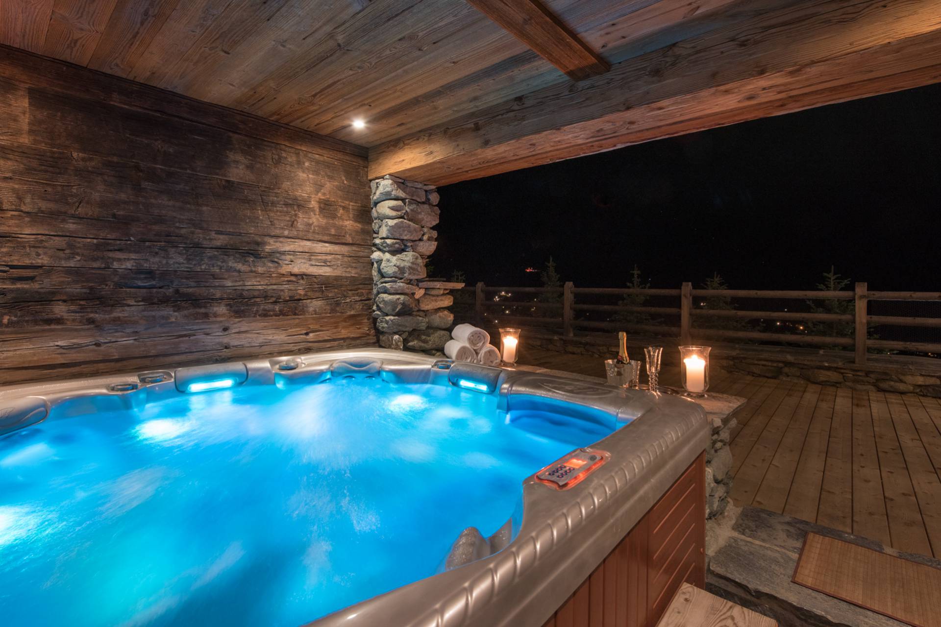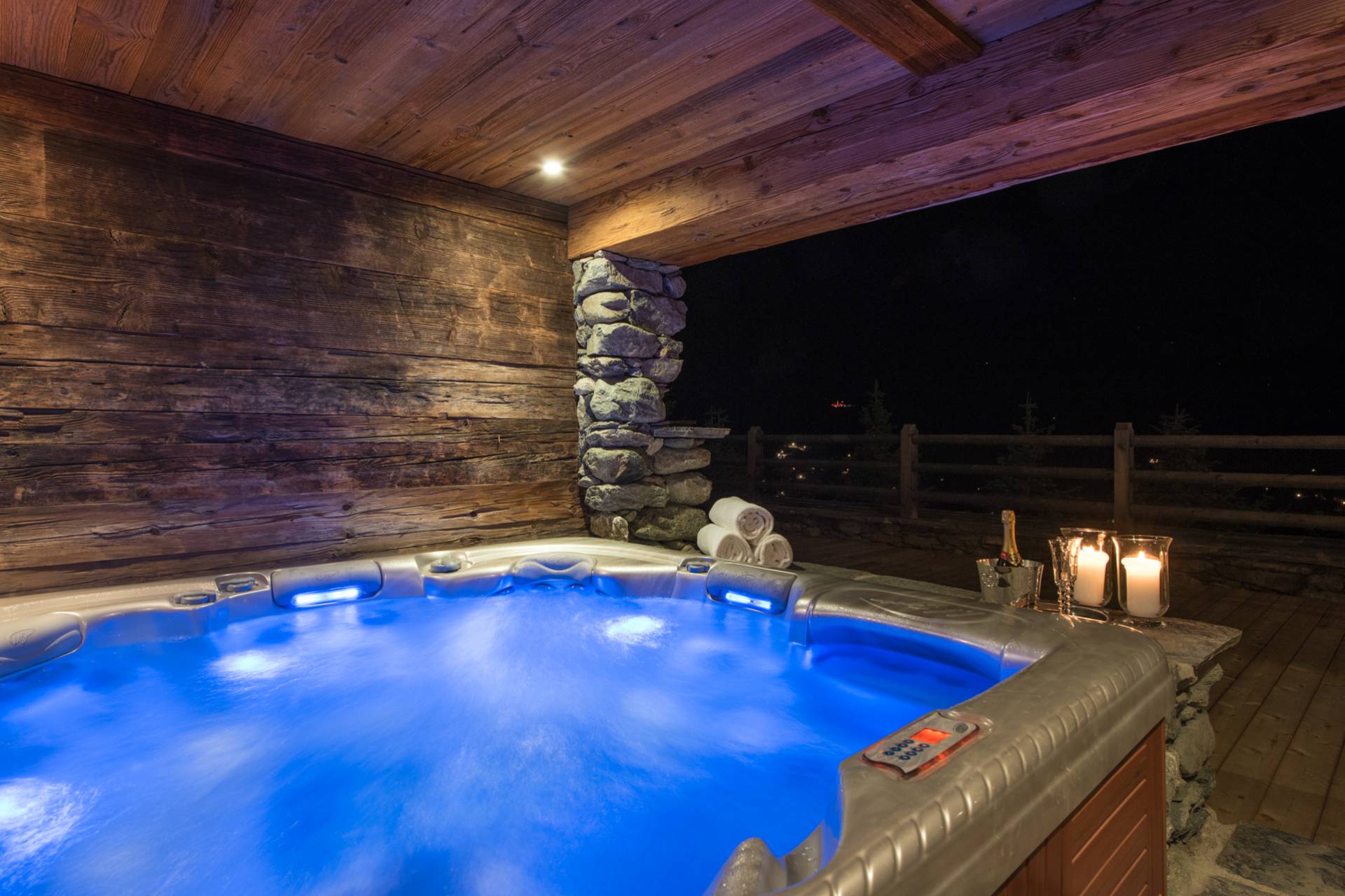 Dès votre retour des pistes, vous profiterez au premier étage des magnifiques espaces dédiés à votre détente. Vous pourrez vous délasser dans le luxueux spa pourvu d’un ravissant hammam paré de mosaïques, d’une douche à effet pluie et d’une salle de massage pendant que vos amis s’amuseront dans la salle de jeux autour de la table de billard ou se reposeront dans les grands canapés du coin télévision décoré d’affiches de cinéma mythiques. À l’extérieur, un jacuzzi abrité par un auvent vous attend pour de délicieuses heures de relaxation.
