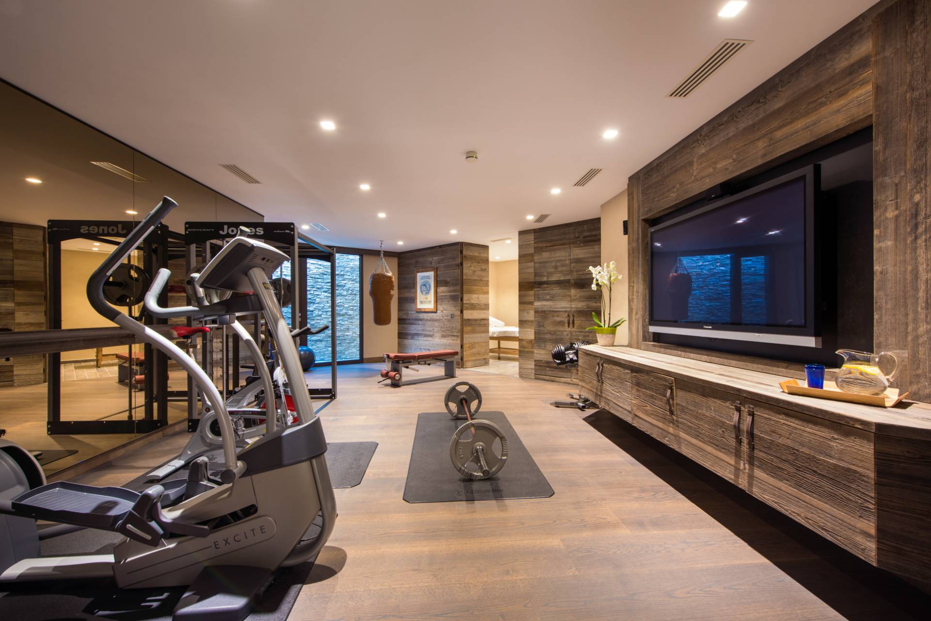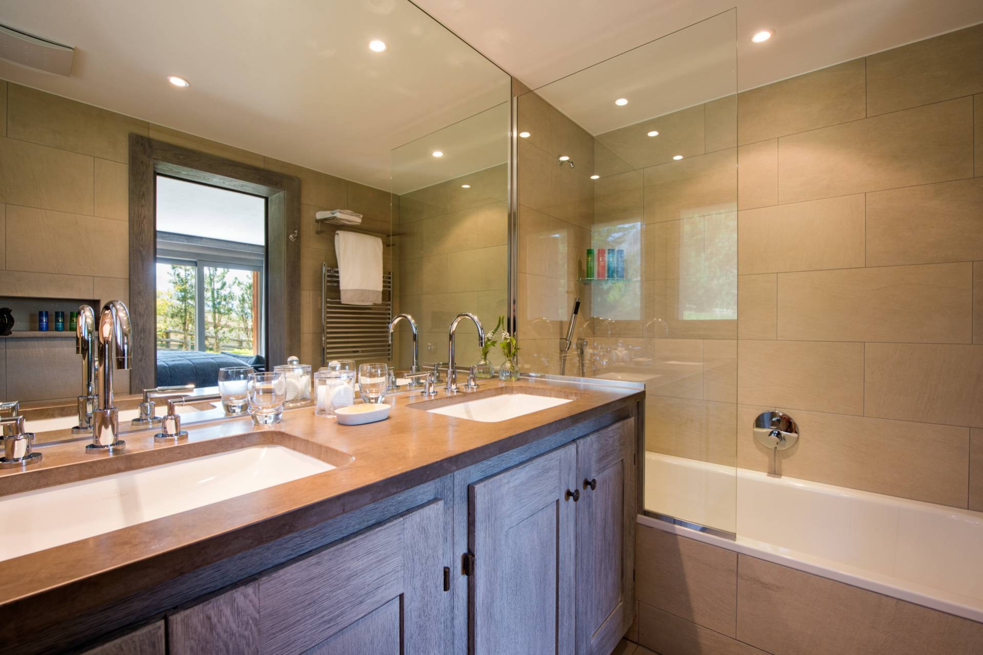 On notera au rez-de-chaussée la cuisine privée (avec espace pour partager le petit-déjeuner autour d’une table pouvant accueillir jusqu’à douze personnes) et le local à ski avec armoire à chaussures chauffante, idéal pour se préparer à une grande journée de sports d’hiver.