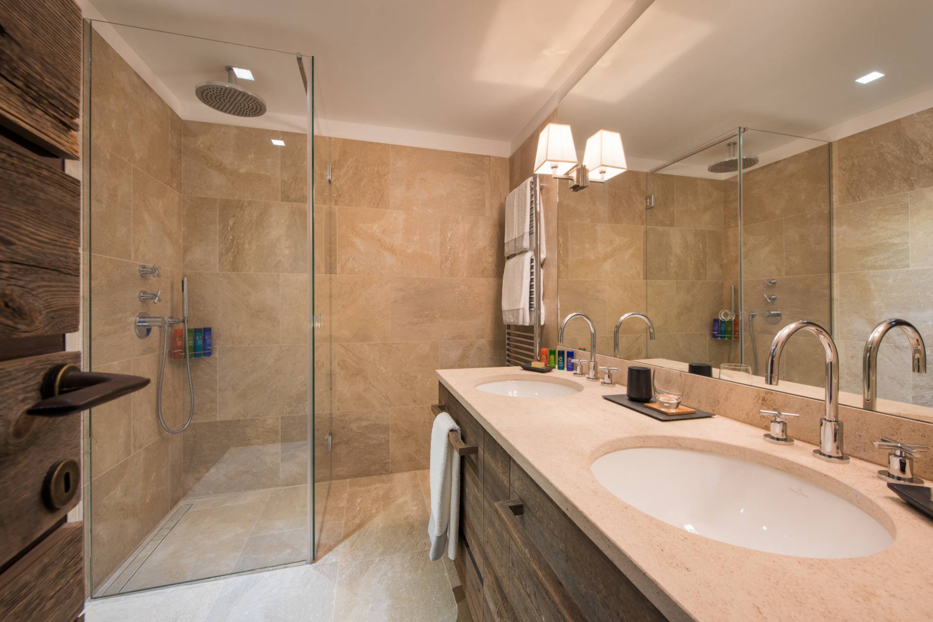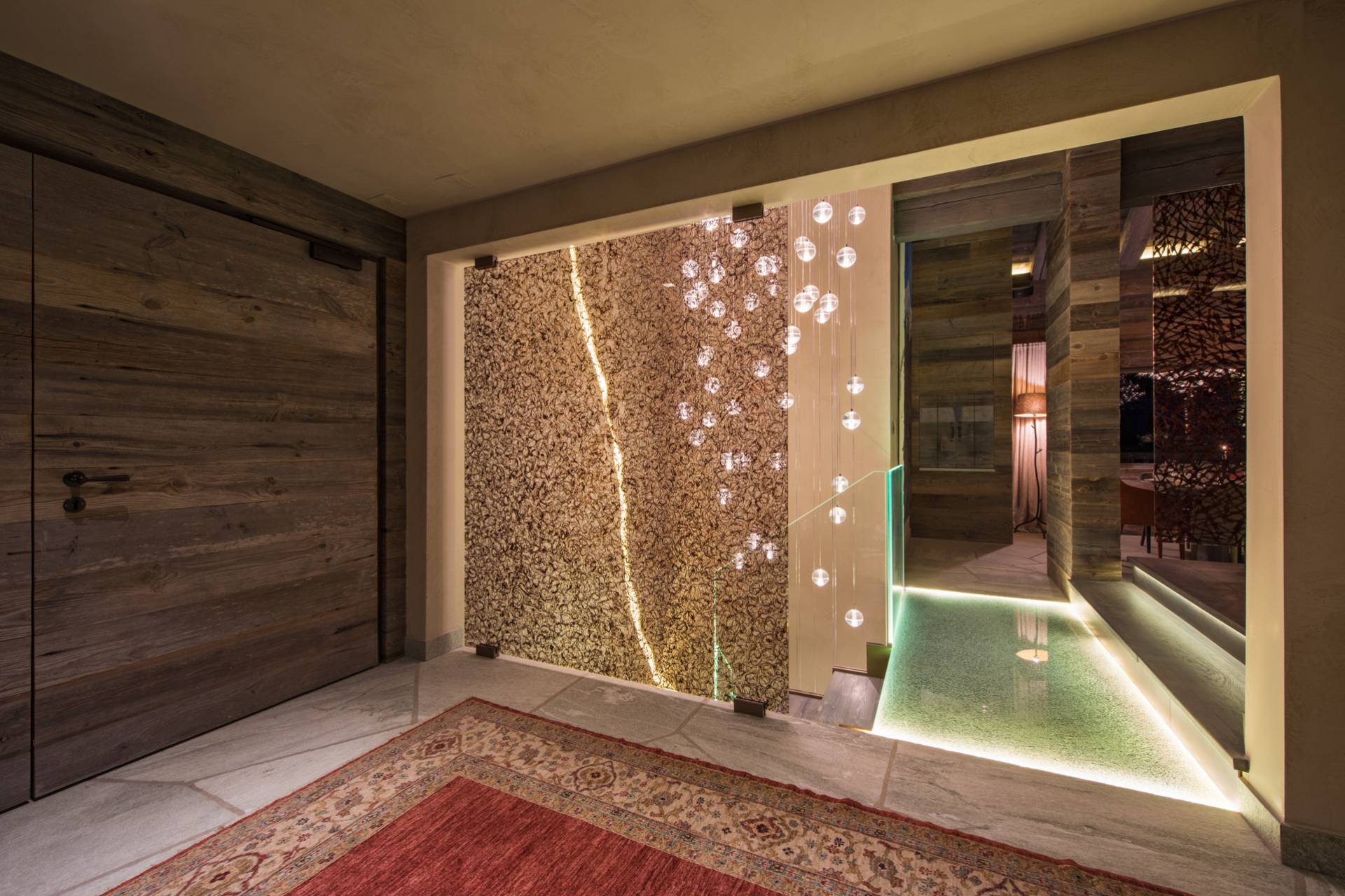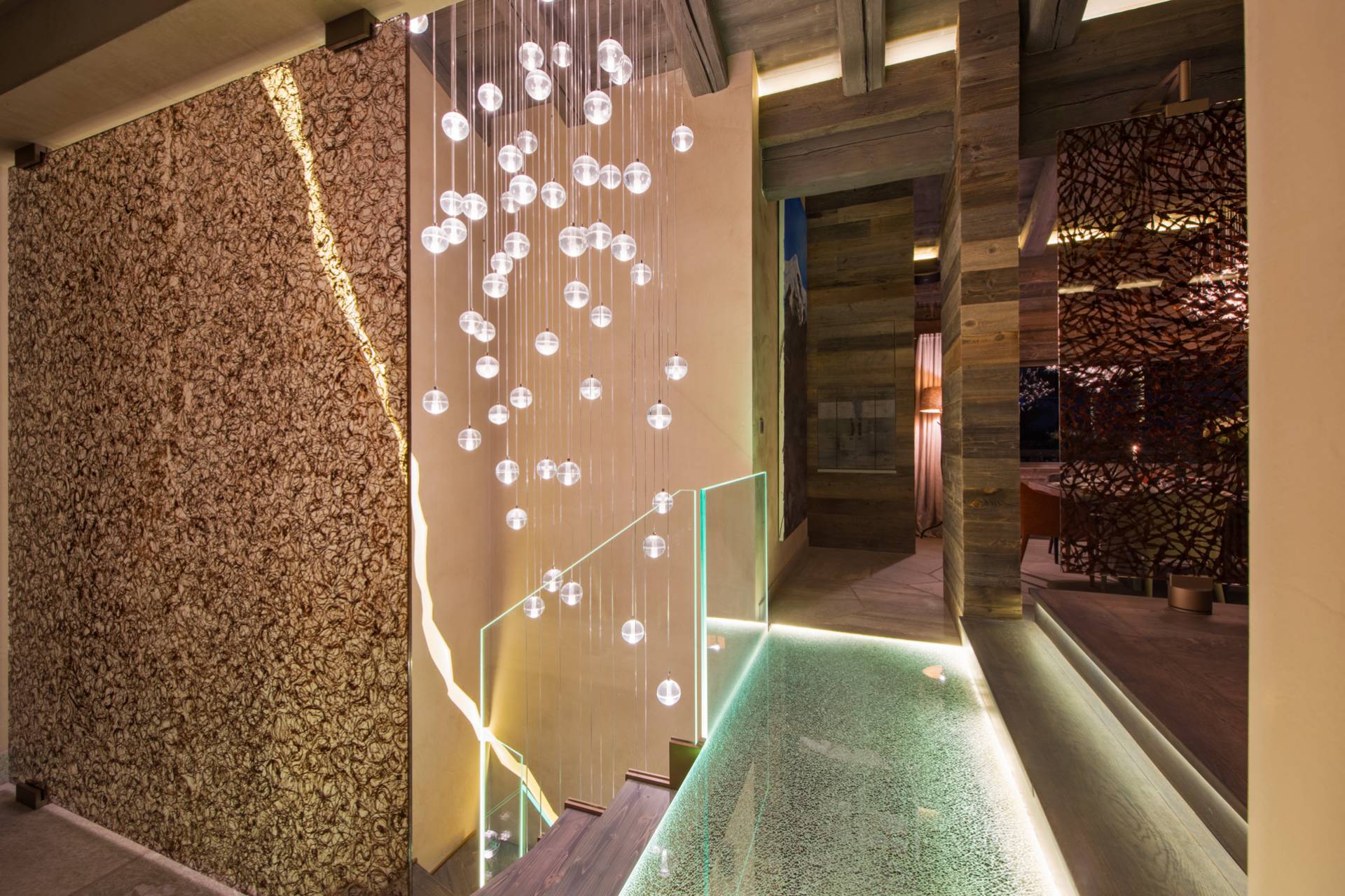 À l’écart de l’agitation de la station, situé dans le secteur recherché des Esserts, il est environné d’une nature spectaculaire, visible de toutes parts des 900 m2 de surface habitable. Pouvant accueillir entre 15 et 17 personnes, ce chalet à la façade de pierre élégante quoique traditionnelle se fondrait presque dans le paysage alentour. Il est pourtant ultra moderne et doté d’un magnifique espace dédié à la relaxation et au bien-être avec une somptueuse piscine intérieure, pour le bonheur de ses occupants, hiver comme été.