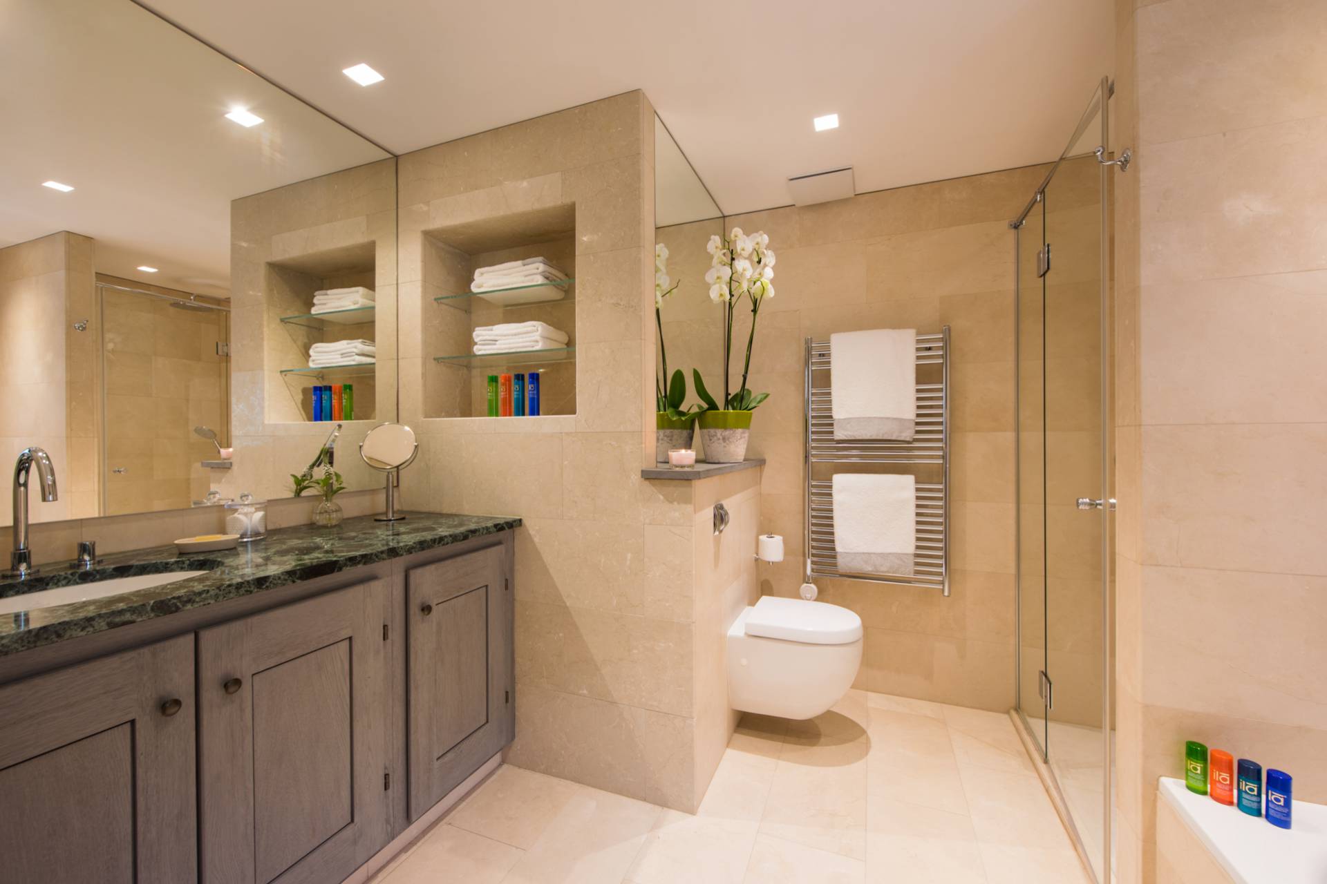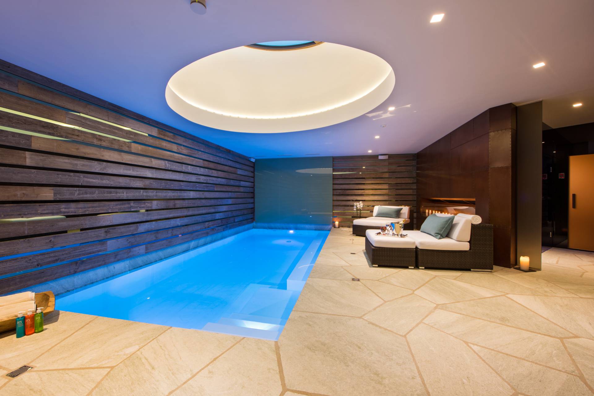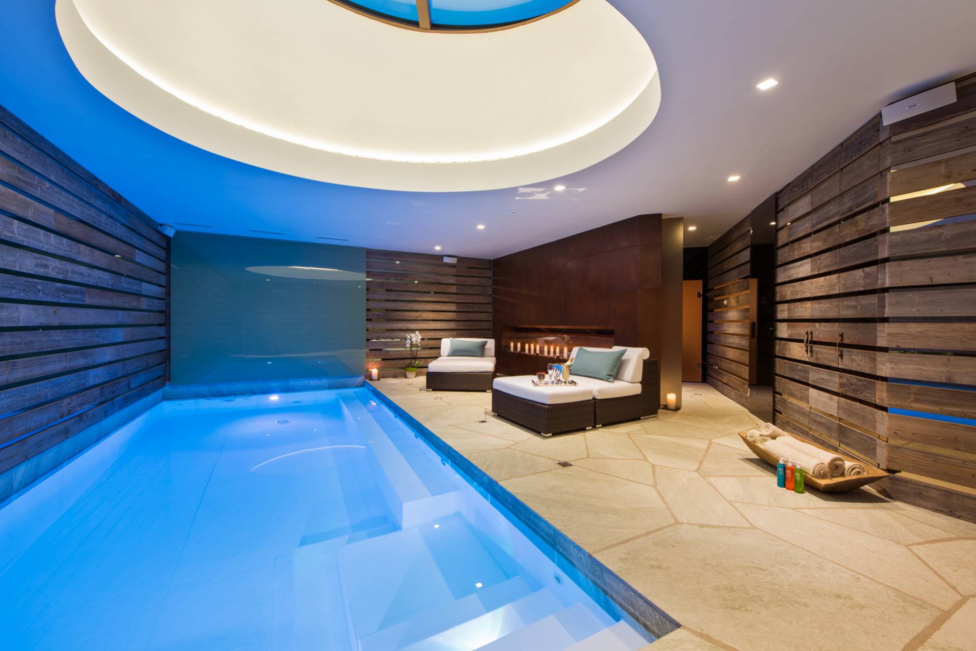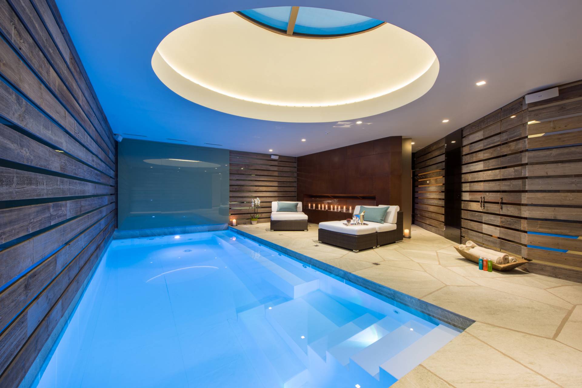 Au dernier étage se trouve sans aucun doute l’atout principal de cette propriété de grand luxe : l’exceptionnelle piscine intérieure baignée par un puit de lumière. L’étage entier est dédié à la relaxation : après quelques brasses, vous pourrez ainsi vous délasser au Spa ou dans le Sauna, vous dépenser dans la salle de gymnastique équipée d’un matériel High Tech ou encore profiter d’un bon massage délivré par l’un de membres de l’équipe talentueuse à votre service, avant de vous étendre devant un bon film sur les grands canapés de la salle de cinéma privée.
