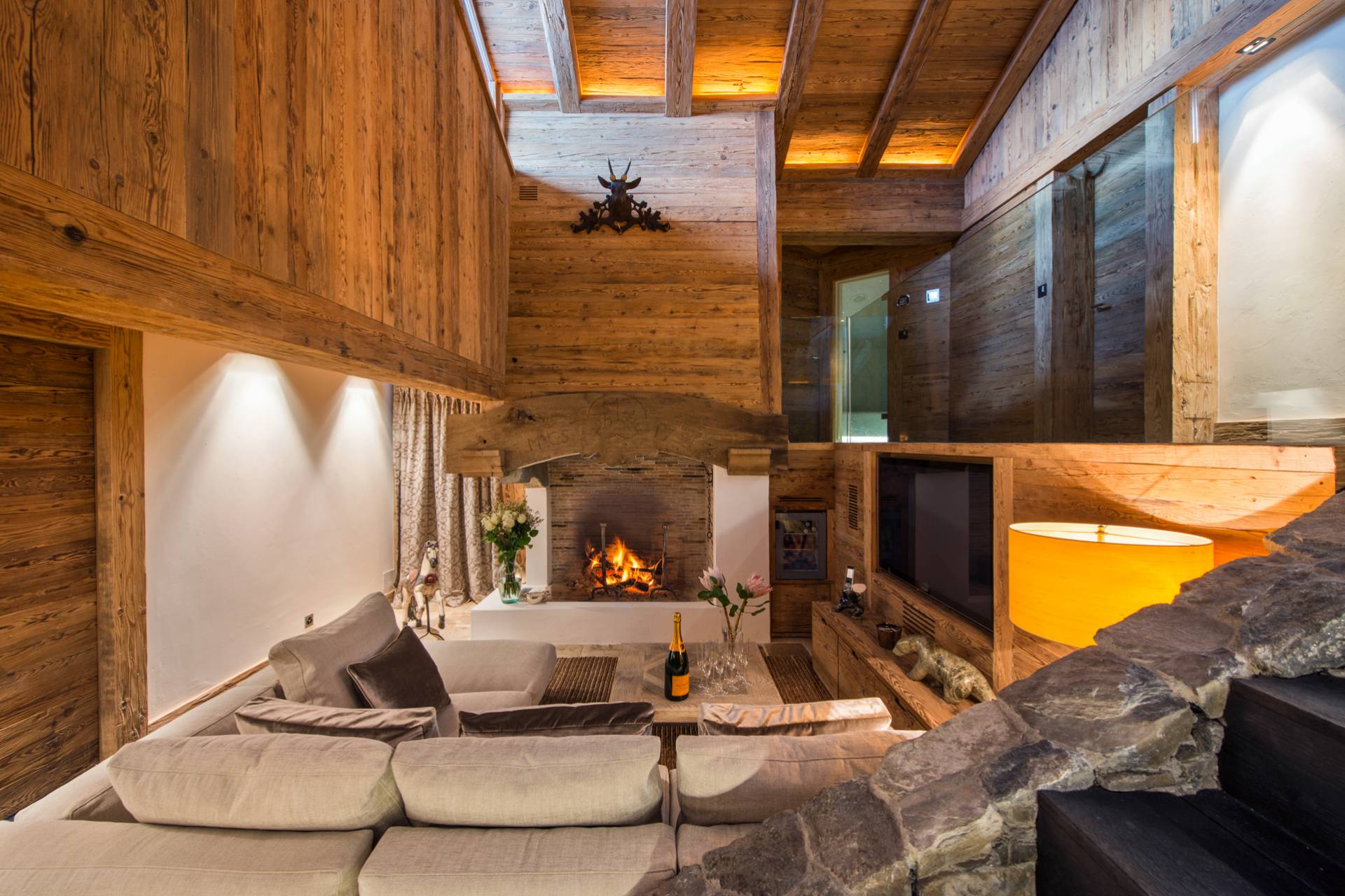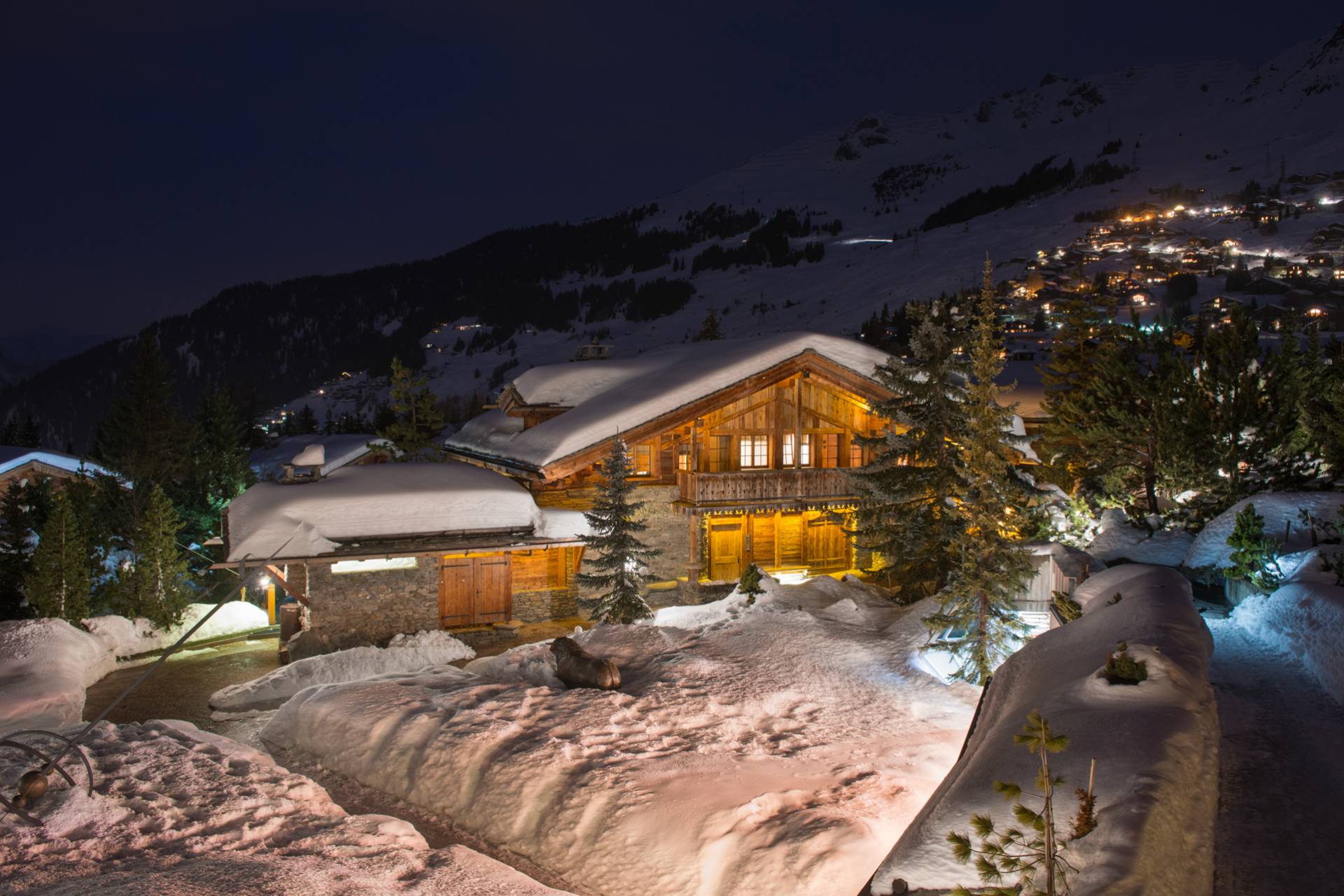 Ce chalet de luxe entre tradition et modernité se trouve à quelques minutes du centre de Verbier, l’une des stations les plus prisées de Suisse, dans un quartier de hameaux très recherché.
