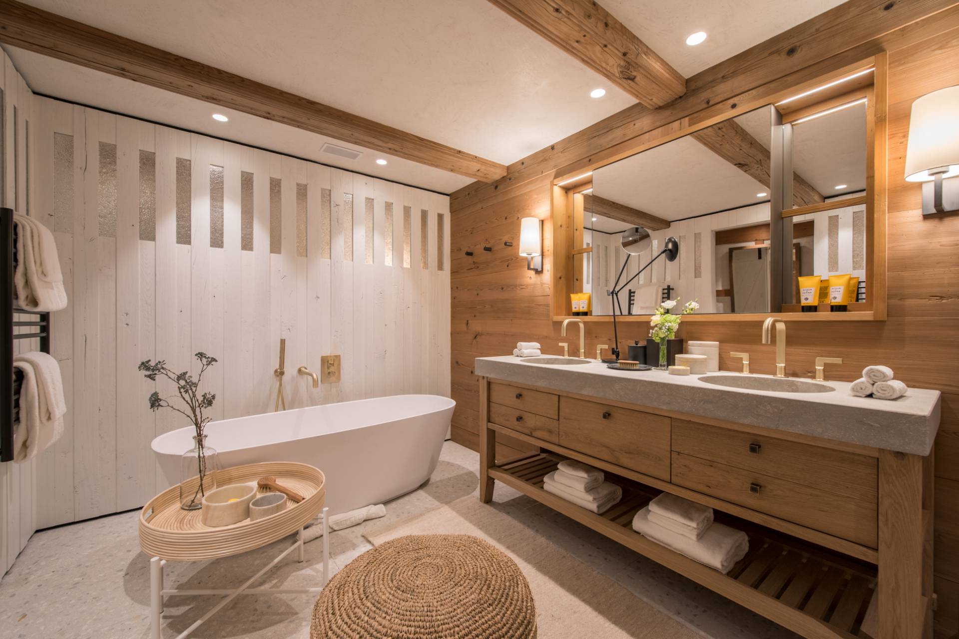 En montant au premier étage de la propriété, trois grandes chambres doubles avec salles de bain privatives ont été créées comme de véritables havres de paix luxueux et apaisants. La décoration et la conception des lieux sont modernes mais gardent un esprit alpin traditionnel. L’une des chambres possède sa terrasse privée. À ce même niveau, une salle de yoga est à votre disposition pour vous délasser après l’effort par des moments de détente et la relaxation.
