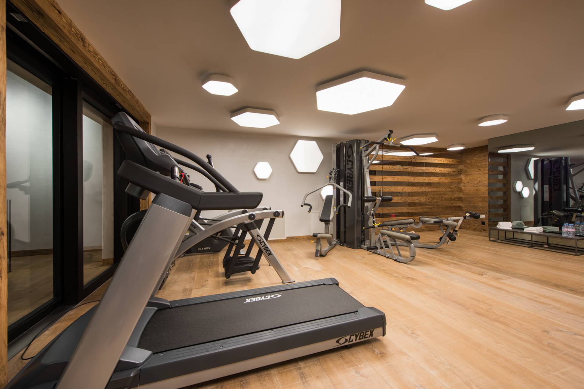 Au dernier niveau du chalet se situent un salon et une salle à manger confortables et spacieux sous de hauts plafonds avec poutres apparentes. De grandes baies vitrées permettent à la lumière d’inonder la pièce, donnant sur un balcon meublé, depuis lequel vous pourrez admirer les couchers de soleil sur les sommets enneigés. Vous pourrez aussi en profiter dans les somptueux canapés entourant la cheminée centrale. Vous serez charmés par le mobilier de style colonial et les œuvres d’art, ainsi que par les nombreuses plantes qui parachèvent la décoration et l’esprit zen de la résidence. Cet étage comprend également un charmant et élégant espace bien-être doté d’un jacuzzi, d’un salon de massage et d’un hammam. Pour vous divertir, une salle de cinéma et un bar se trouvent enfin au sous-sol.