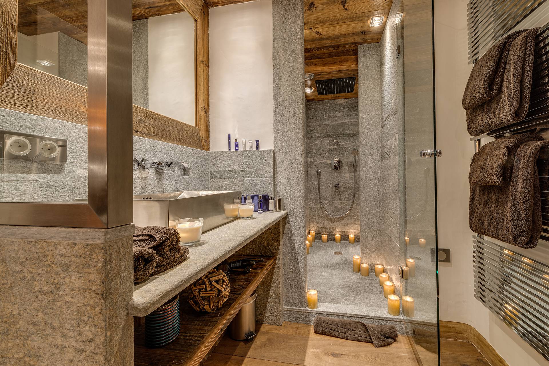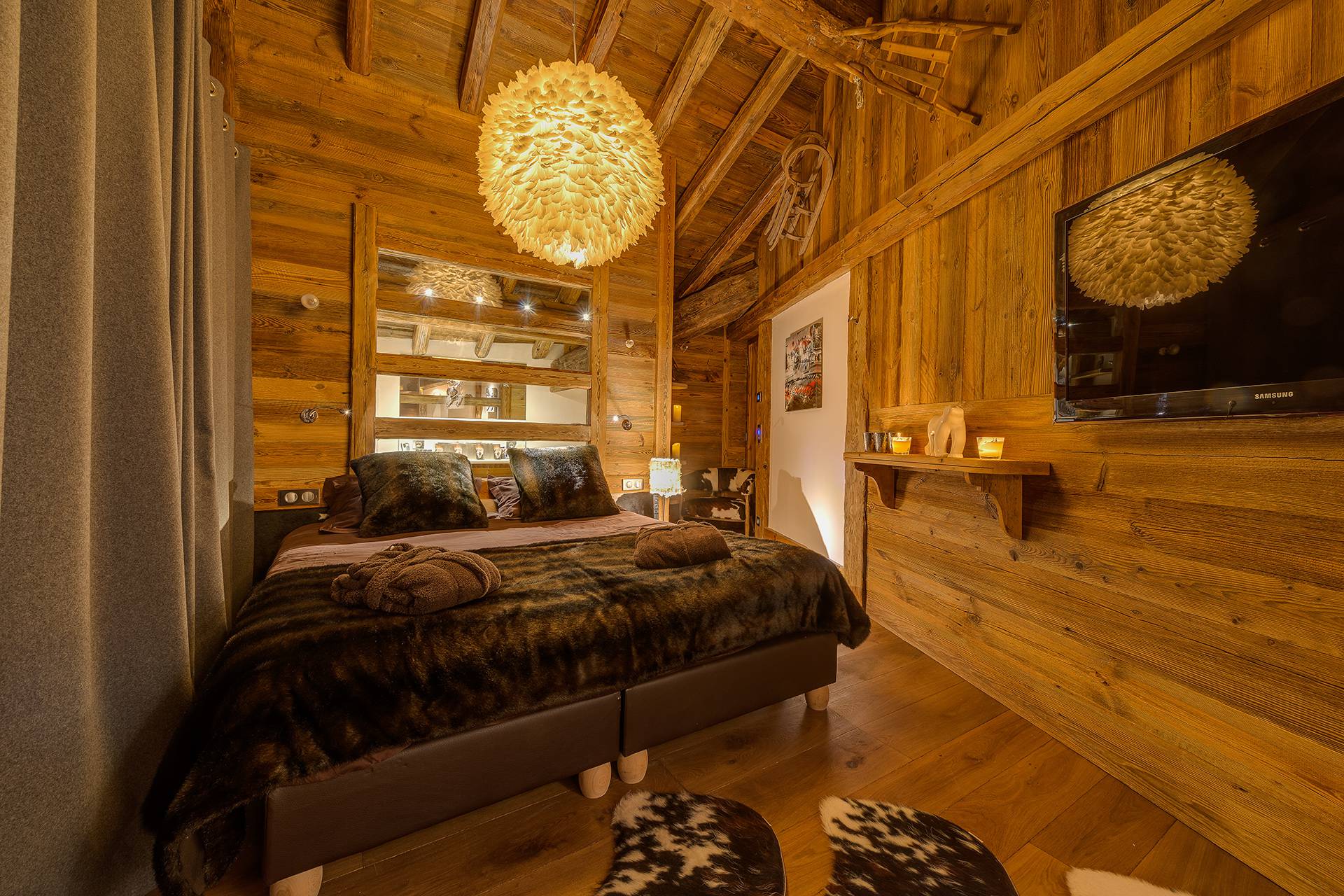 Prenant place au milieu des sapins enneigés, la devanture de bois de cette merveille des Alpes semble impressionnante. En effet, ce chalet recèle plus d’une surprise incroyable. Décoré de façon traditionnelle, ses belles mansardes de bois ainsi que son mobilier font indéniablement penser à la montagne. Sous un dôme de pierre, pénétrez dans cette merveille au firmament du luxe.