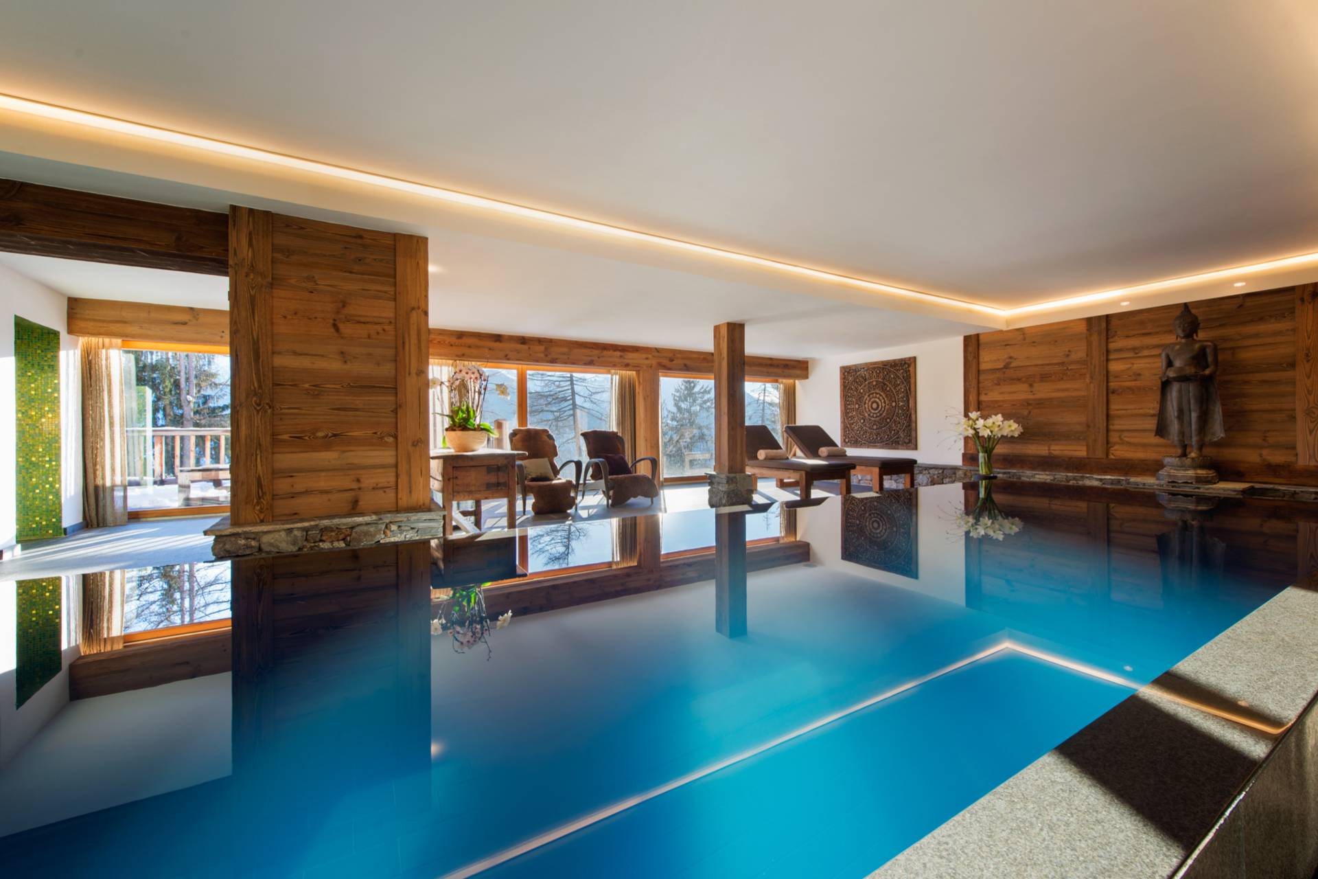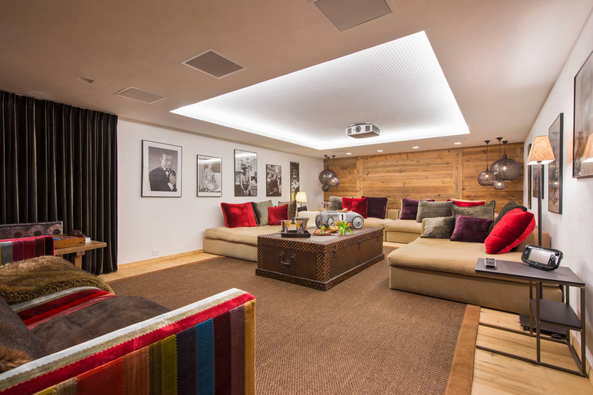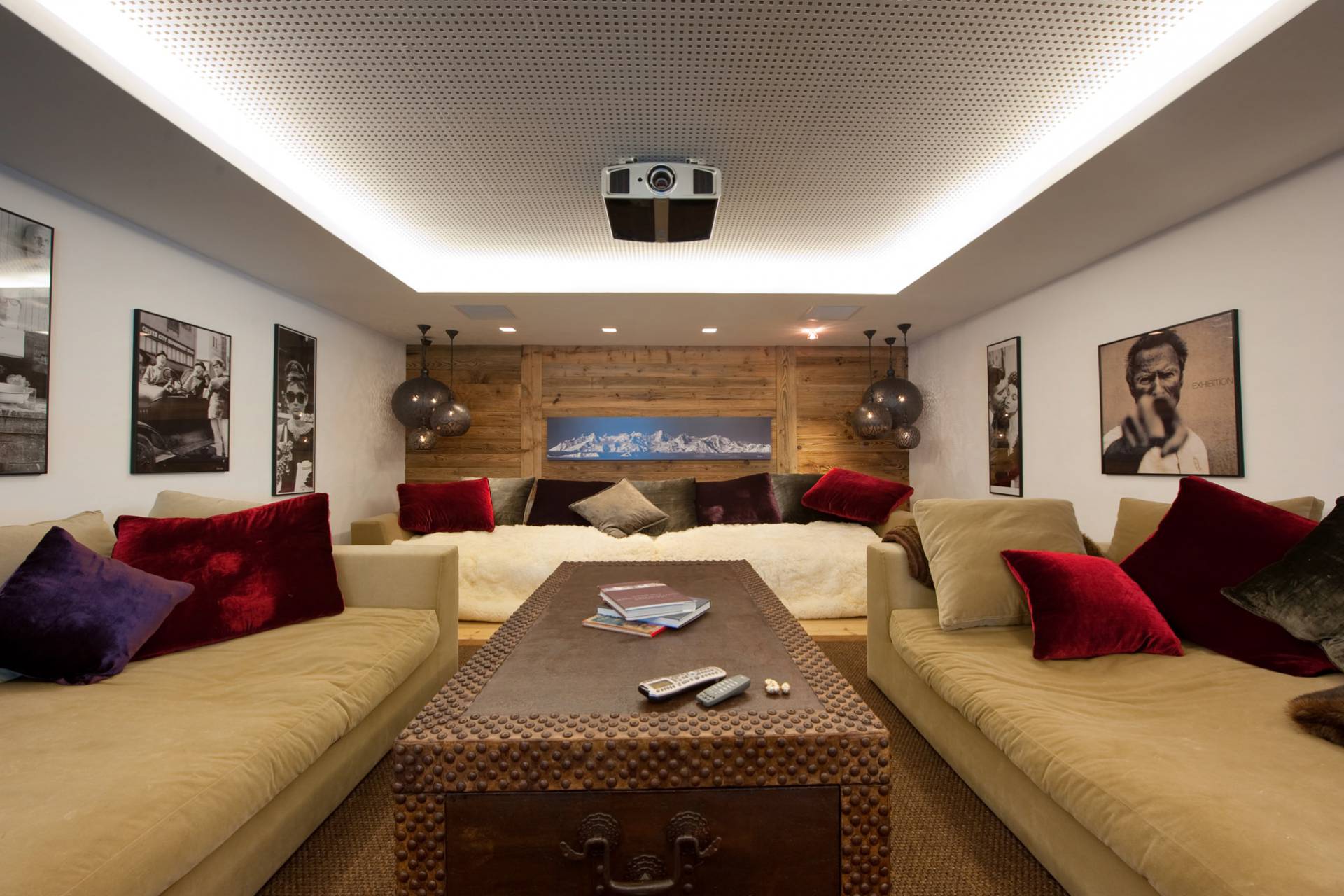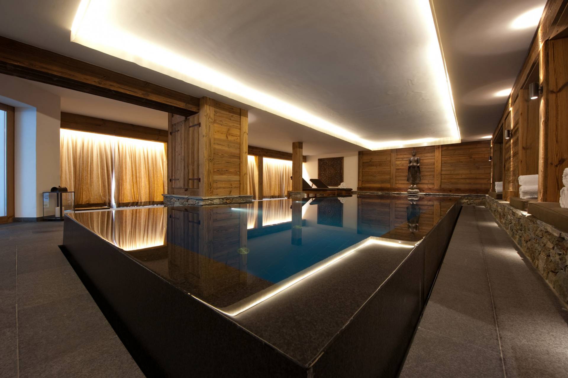 Au rez-de-chaussée, le spa avec piscine intérieure, hammam et sauna, aux touches décoratives venues d’Asie lui donnant une agréable ambiance zen, est l’un des atouts de cette incroyable propriété, tout comme la salle de sport et la salle de cinéma équipée des dernières technologies audio et vidéo. Au retour de votre journée de sport d’hiver, après avoir déposé vos skis dans le local dédié, vous jouirez d’un moment de détente autour d’un verre au bar disposant de sa propre cave à vins.