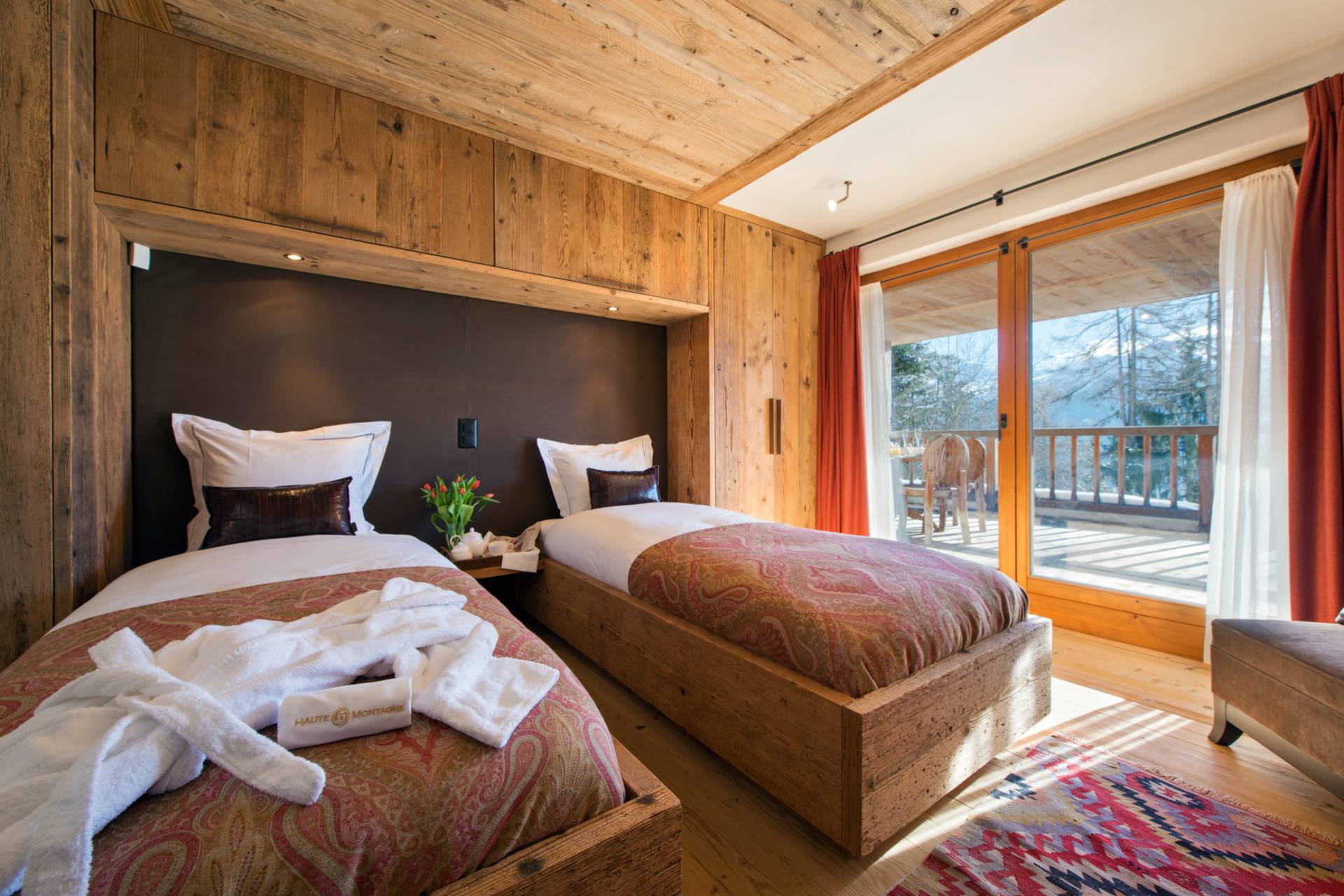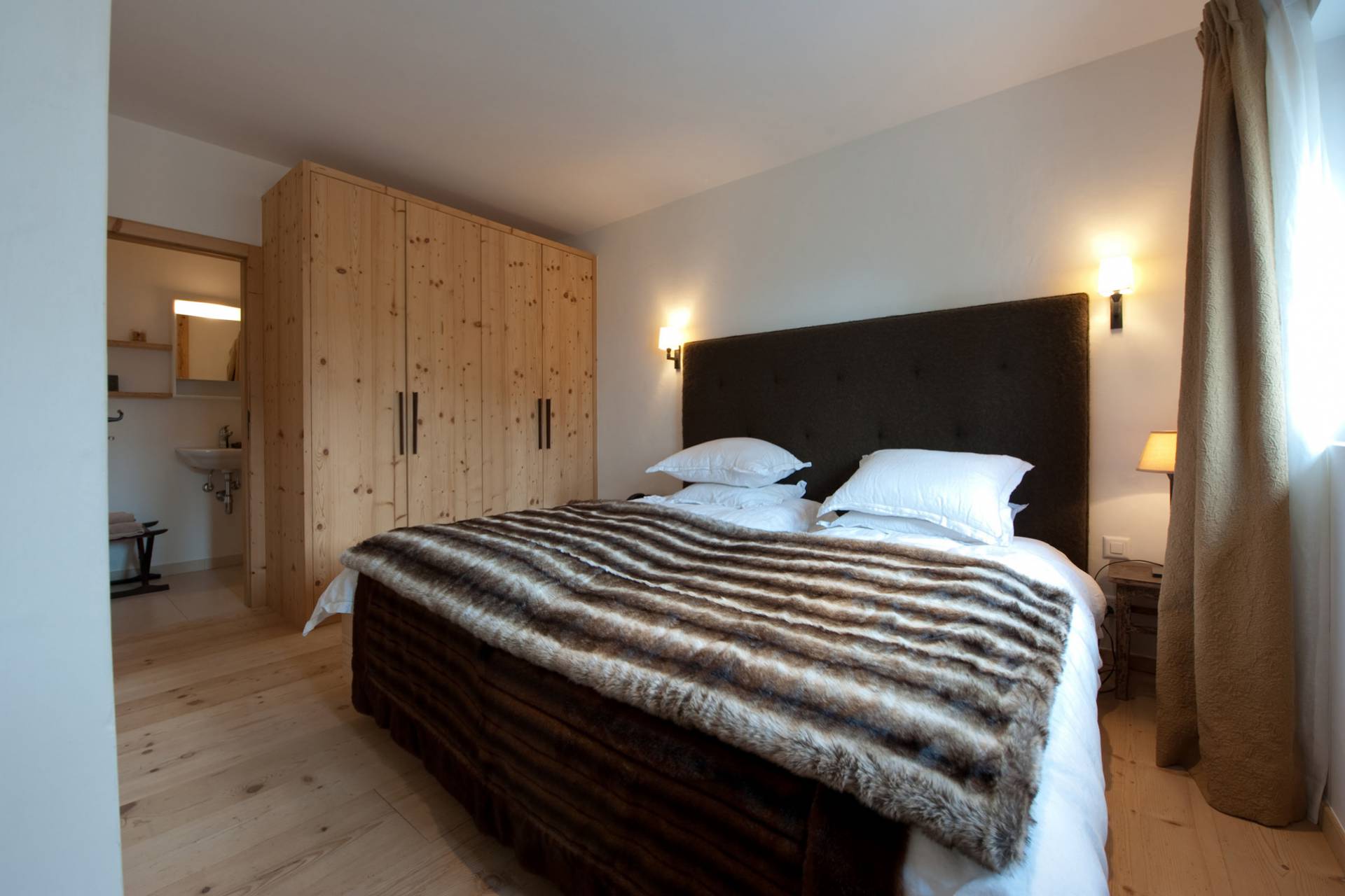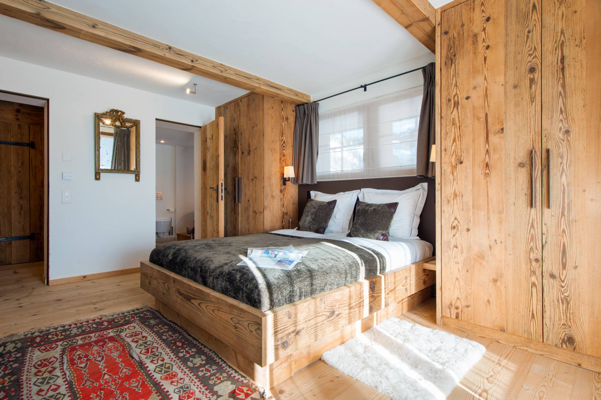 Le premier étage contient quatre chambres indépendantes, ayant l’avantage de disposer toutes de leur propre salle de bain ou douche et d’un accès au balcon. L’agencement intérieur est pensé pour s’adapter à tous vos invités, avec deux chambres avec lits doubles, une chambre avec lits superposés pour les enfants, et une chambre avec lits jumeaux. Leur décoration est à la fois élégante, moderne et confortable avec cette touche alpine caractéristique de ce chalet spectaculaire sur les hauteurs de Verbier.