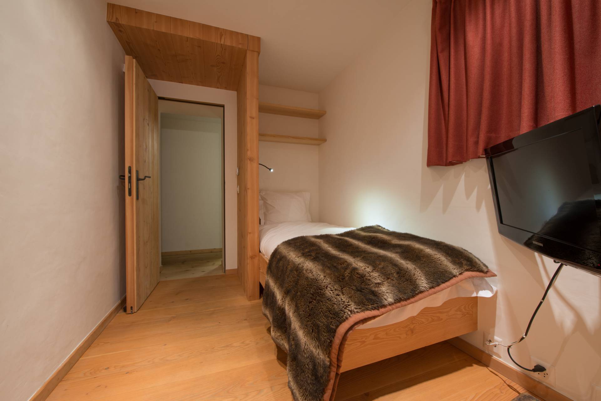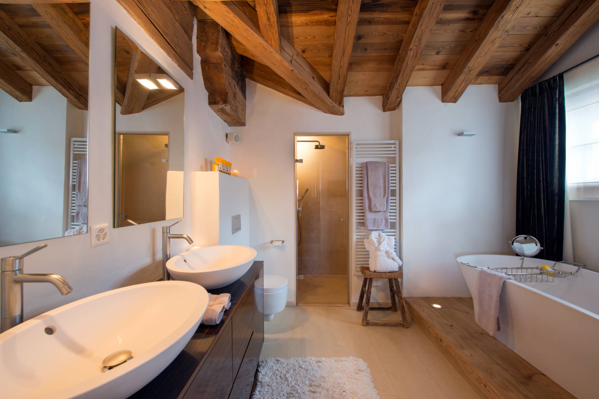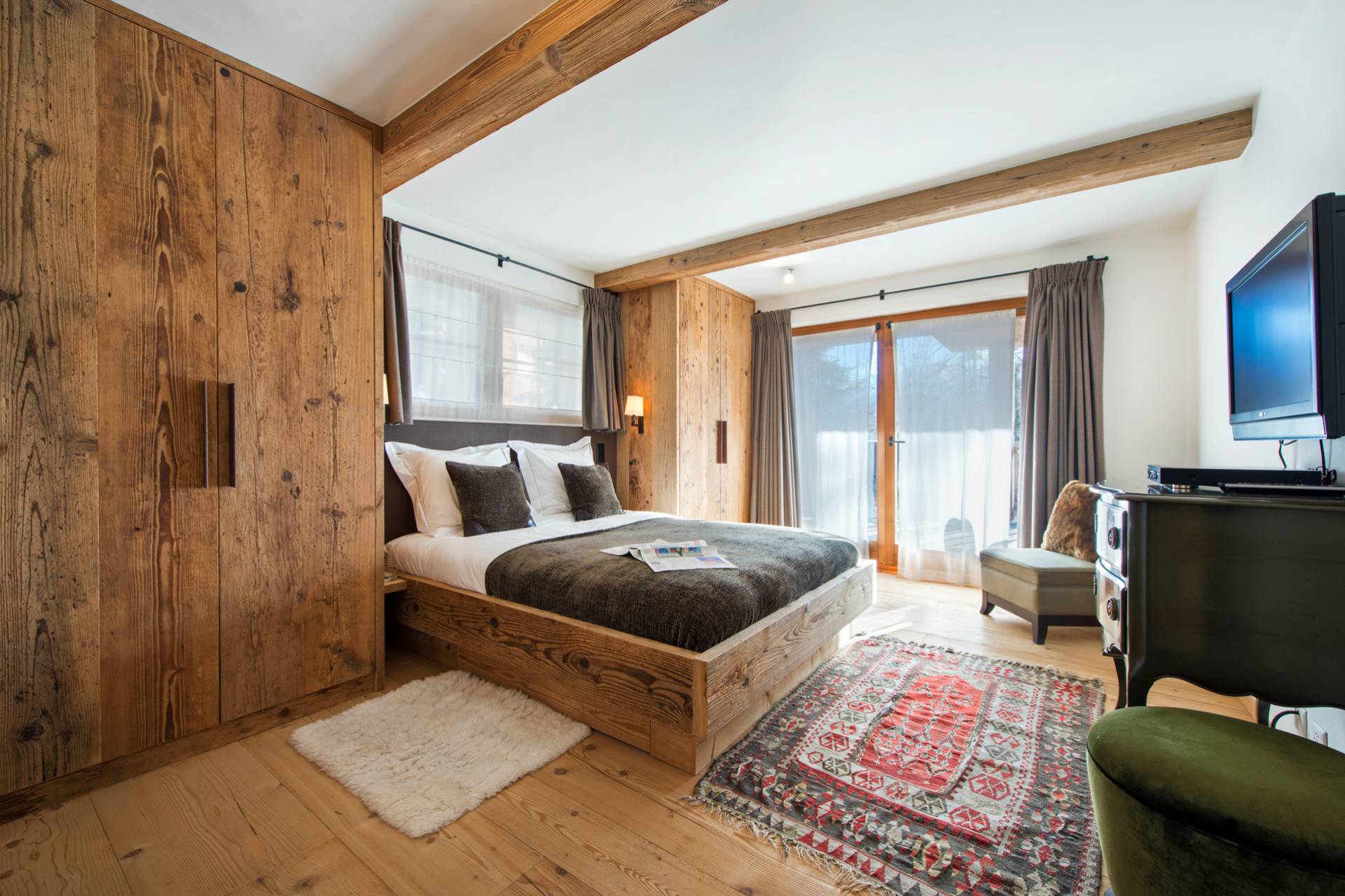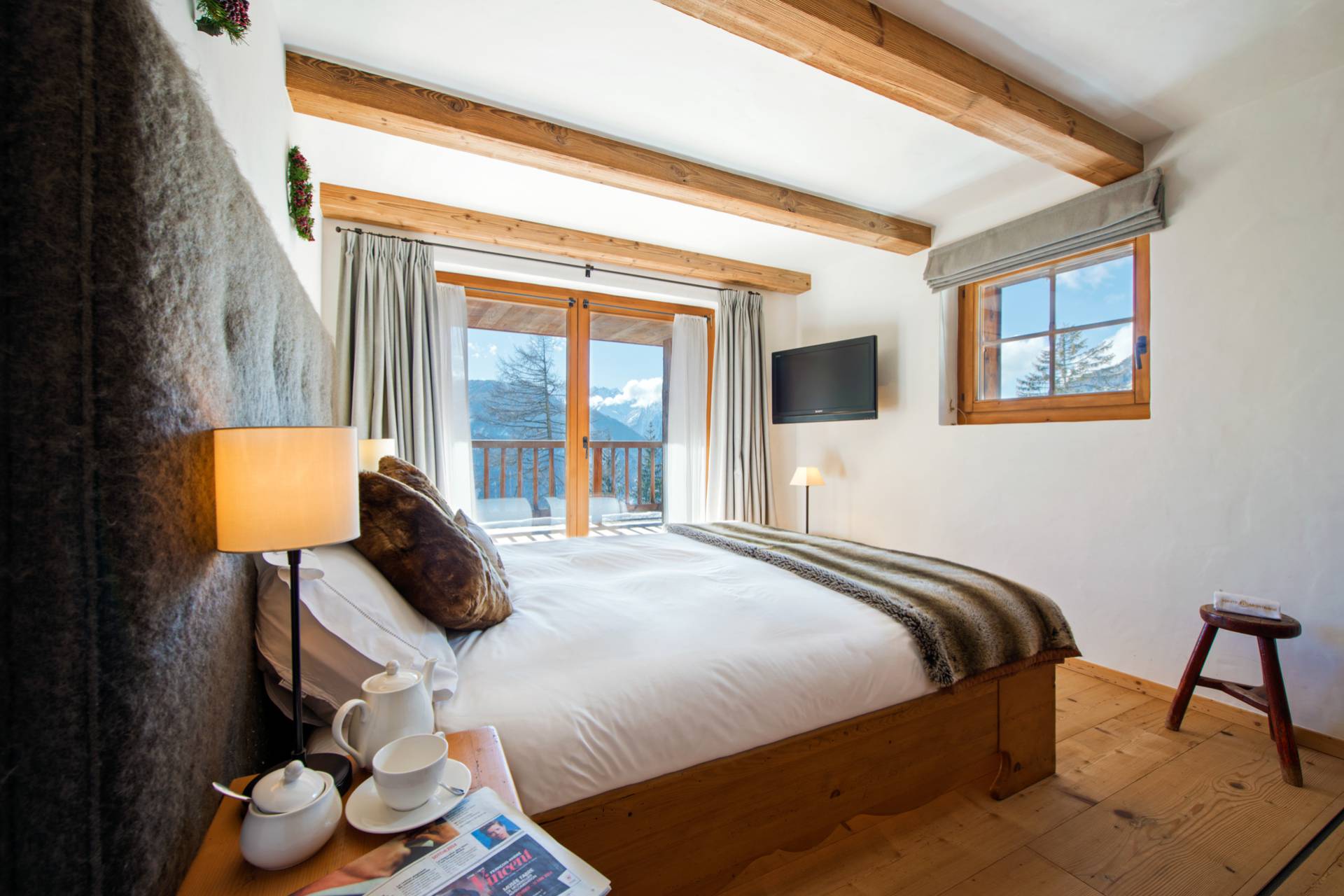 Le premier étage contient quatre chambres indépendantes, ayant l’avantage de disposer toutes de leur propre salle de bain ou douche et d’un accès au balcon. L’agencement intérieur est pensé pour s’adapter à tous vos invités, avec deux chambres avec lits doubles, une chambre avec lits superposés pour les enfants, et une chambre avec lits jumeaux. Leur décoration est à la fois élégante, moderne et confortable avec cette touche alpine caractéristique de ce chalet spectaculaire sur les hauteurs de Verbier.