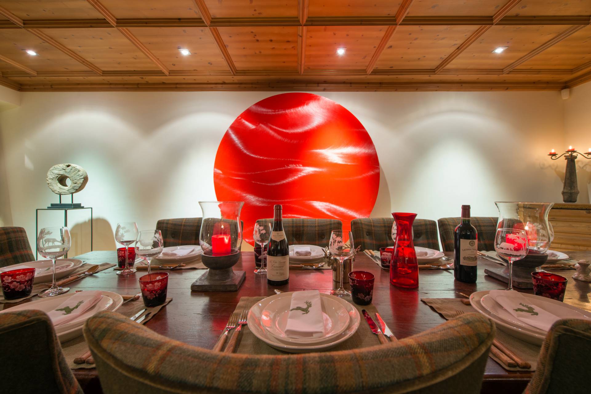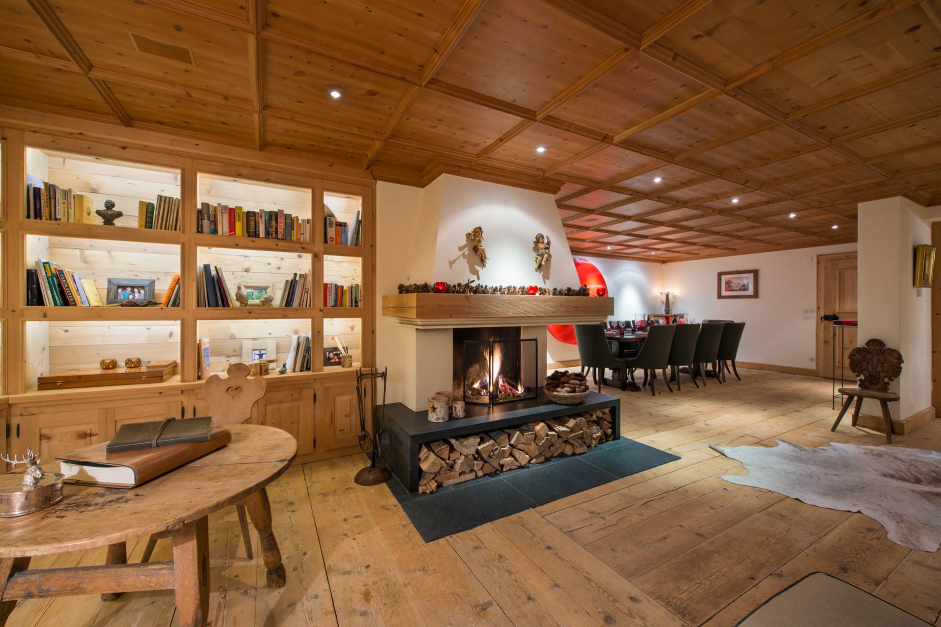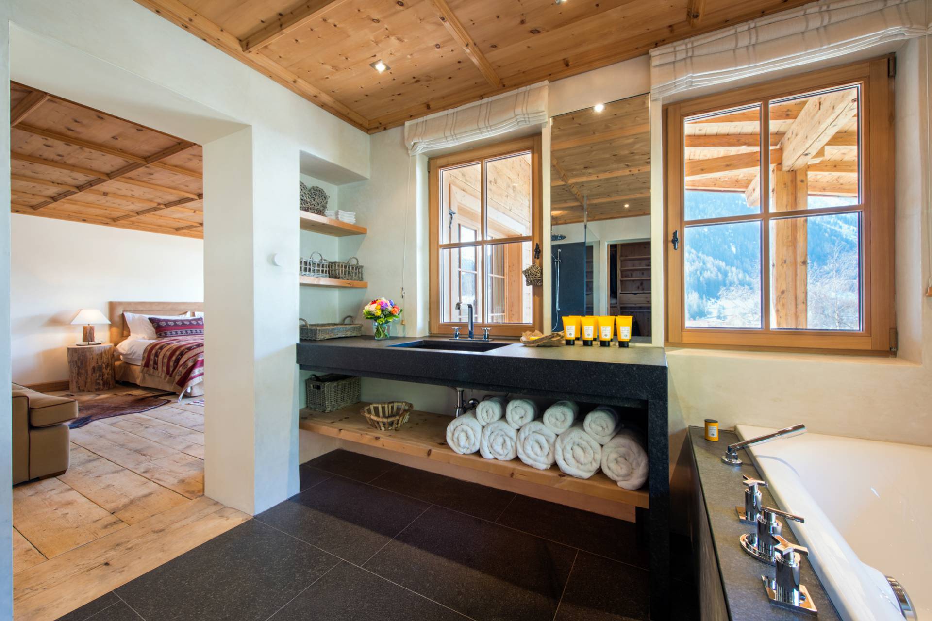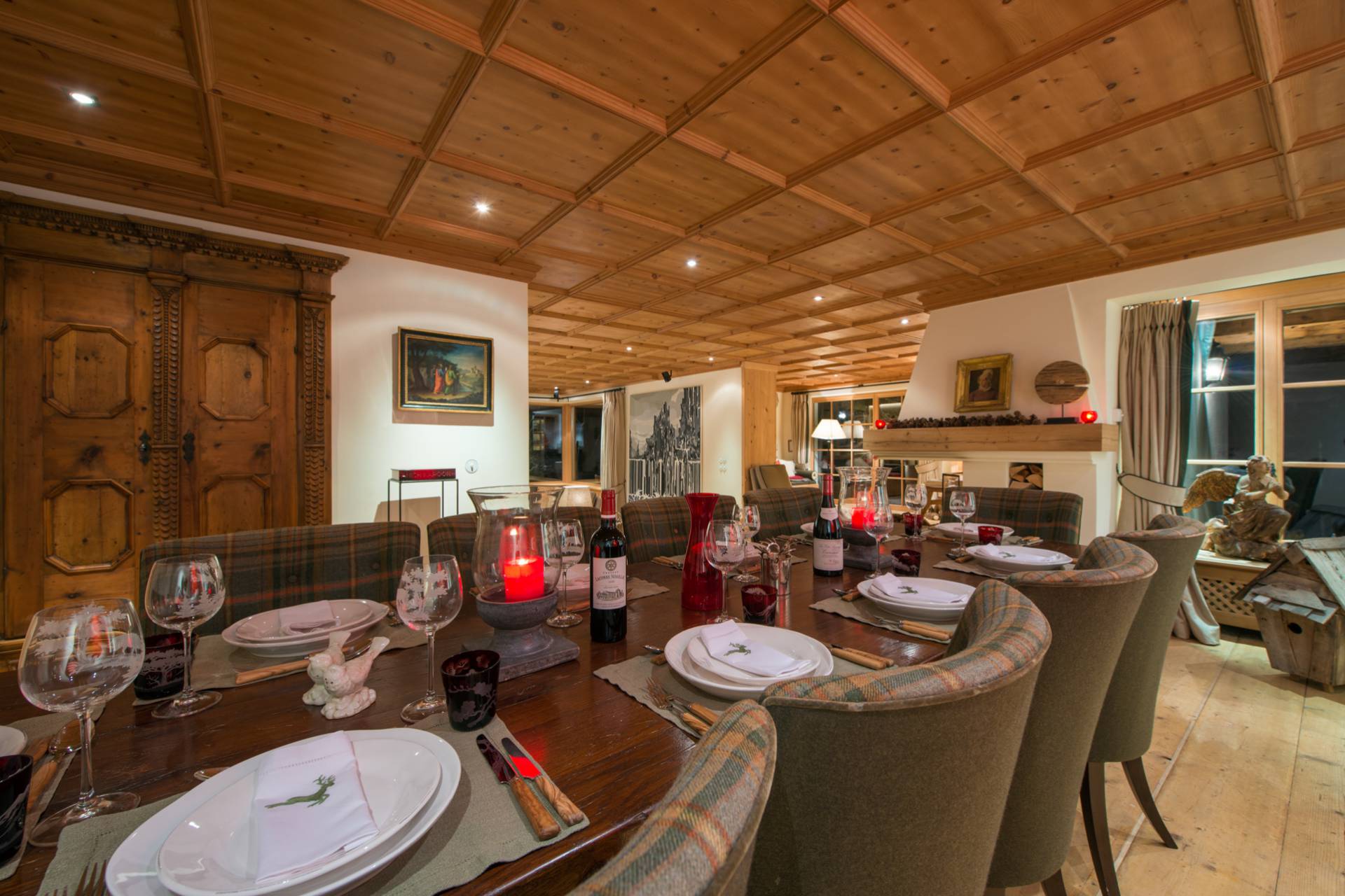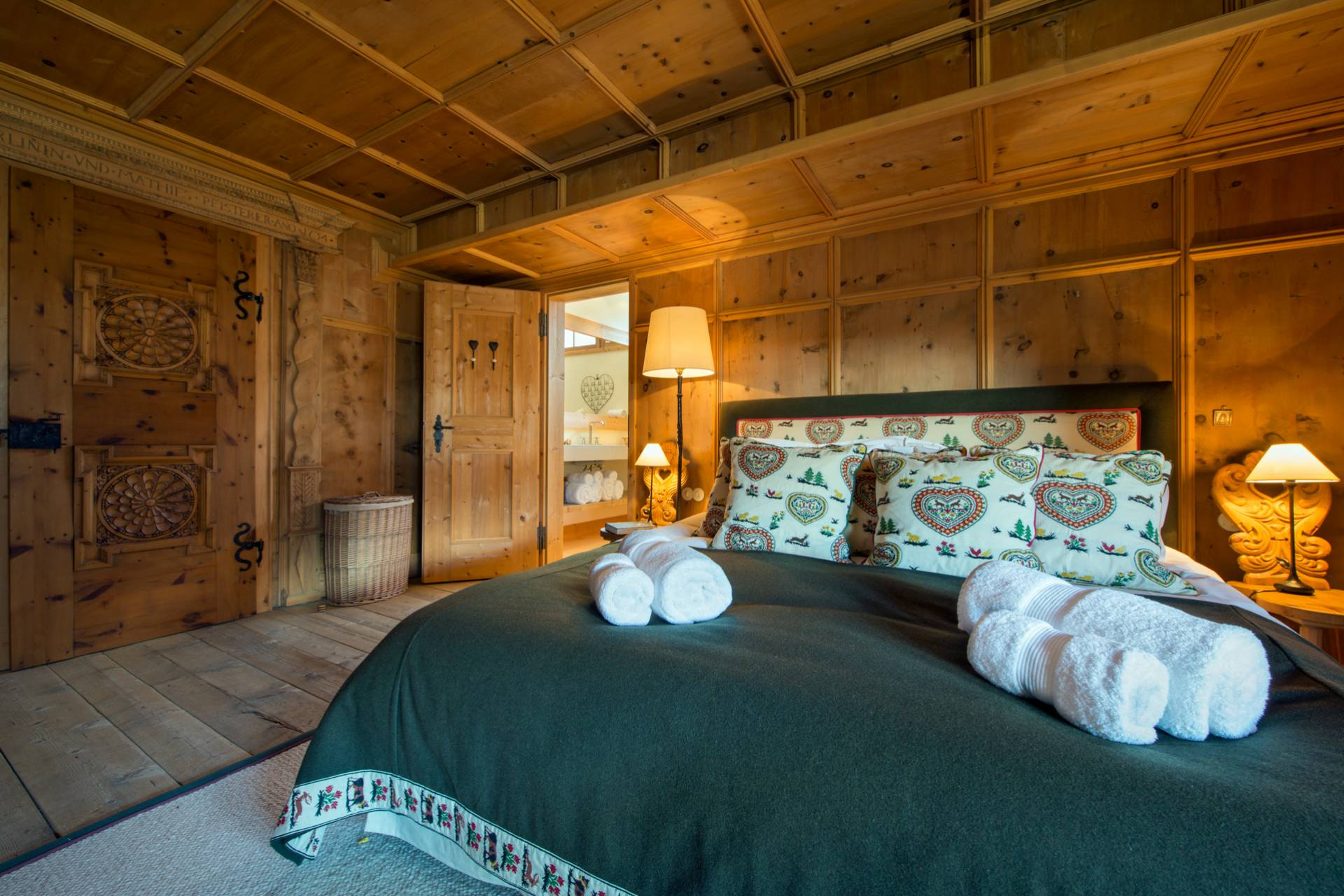 Proche d’un travail d’orfèvrerie, les portes sont issues d’un bois de chêne datant de 300 ans d’âge. Les différentes œuvres d’art contemporaines, accrochées sur les murs du chalet, accentuent son charme et sa modernité. Vous pourrez profiter, au même étage, d’un grand dressing et d’une cuisine. Sur toute la partie ouest du chalet, le balcon baigne les lieux de lumière.