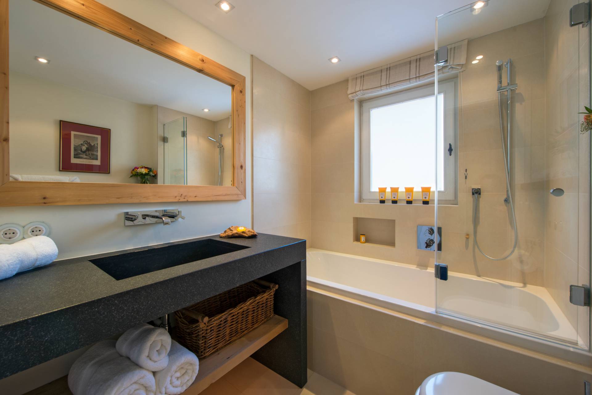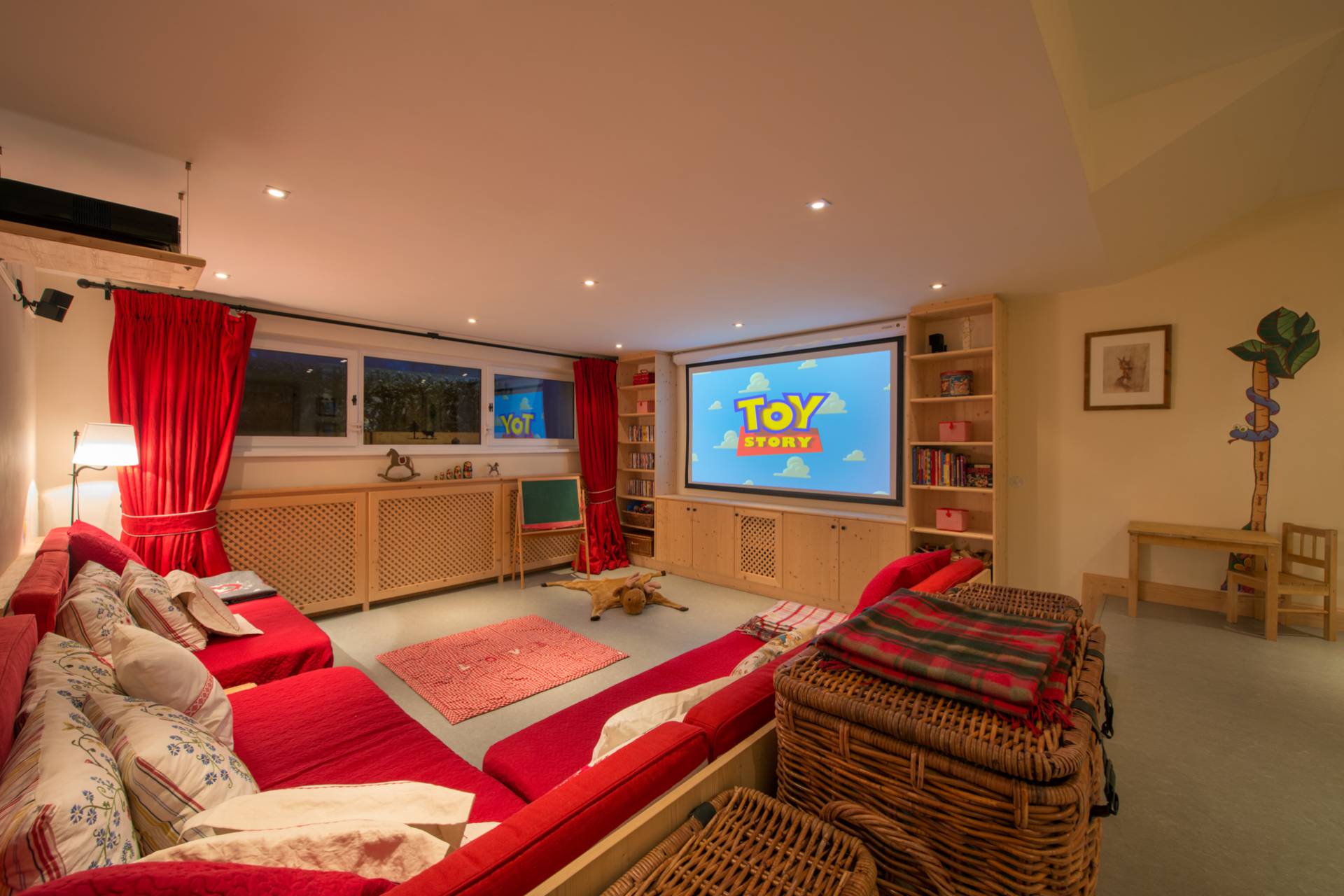 Au sous-sol, à côté du local à skis, un hammam a été aménagé pour vous assurer des moments de détente après l’effort, tandis que les enfants pourront profiter d’une salle de jeu et de visionnage. Une chambre double et une chambre simple avec salles de bains attenantes vous permettront enfin d’accueillir votre personnel de maison.
