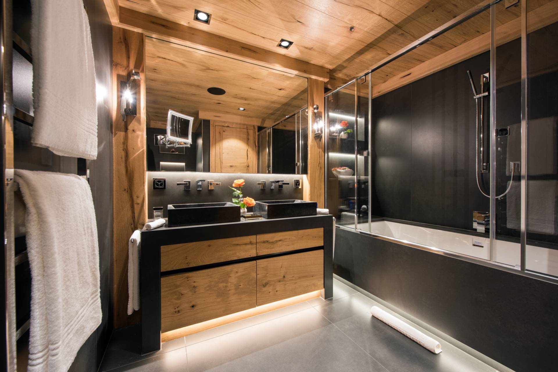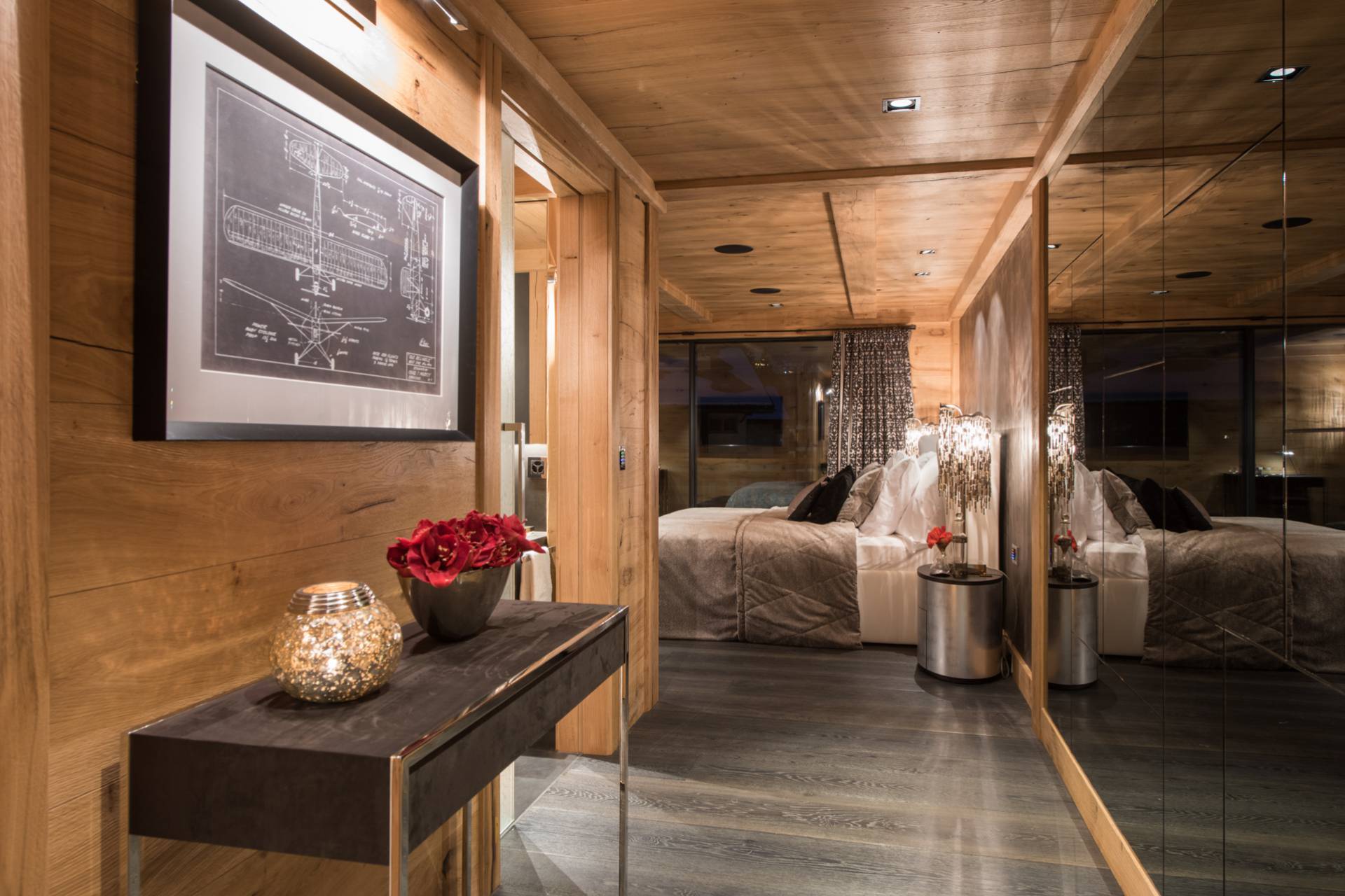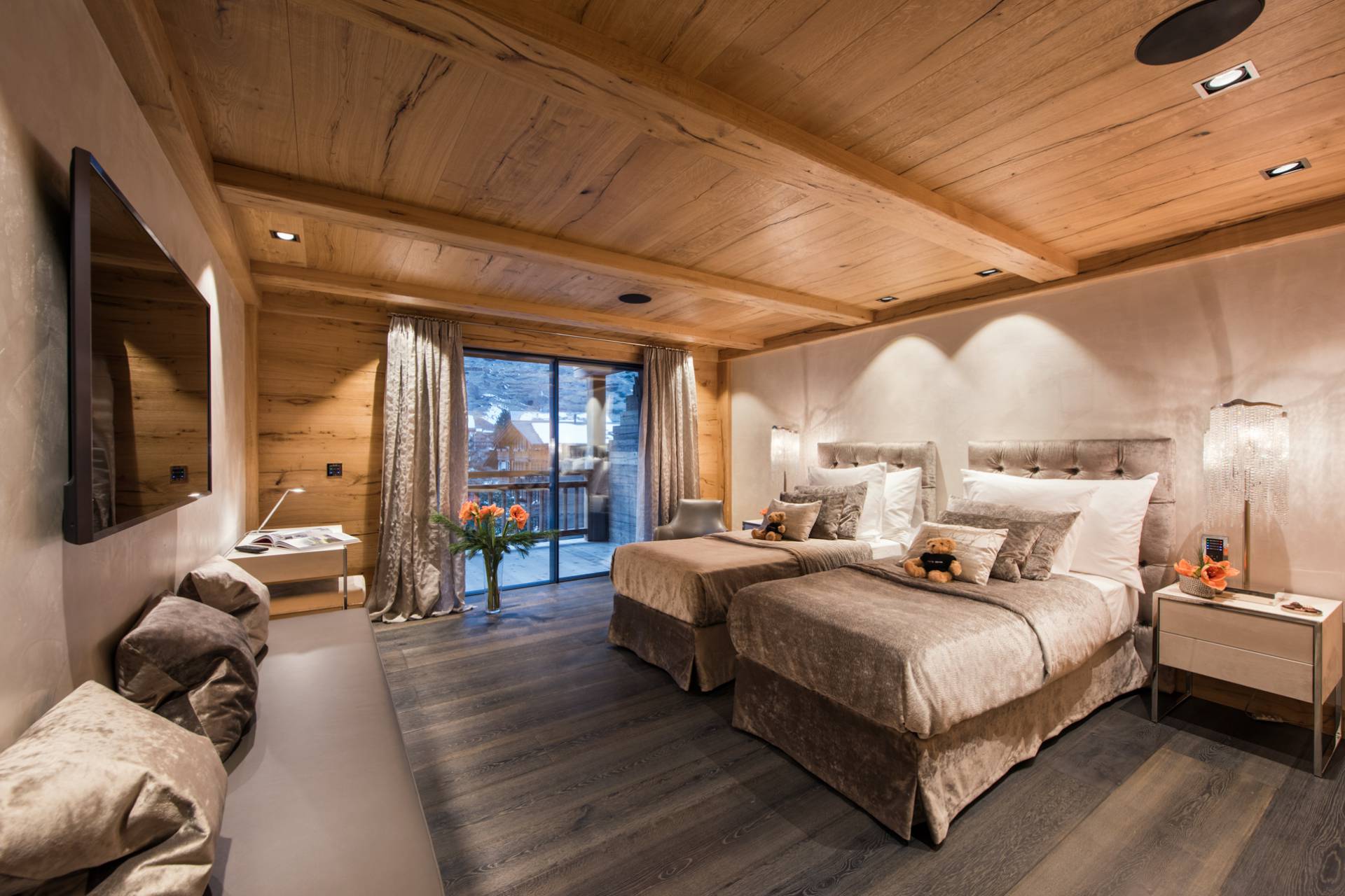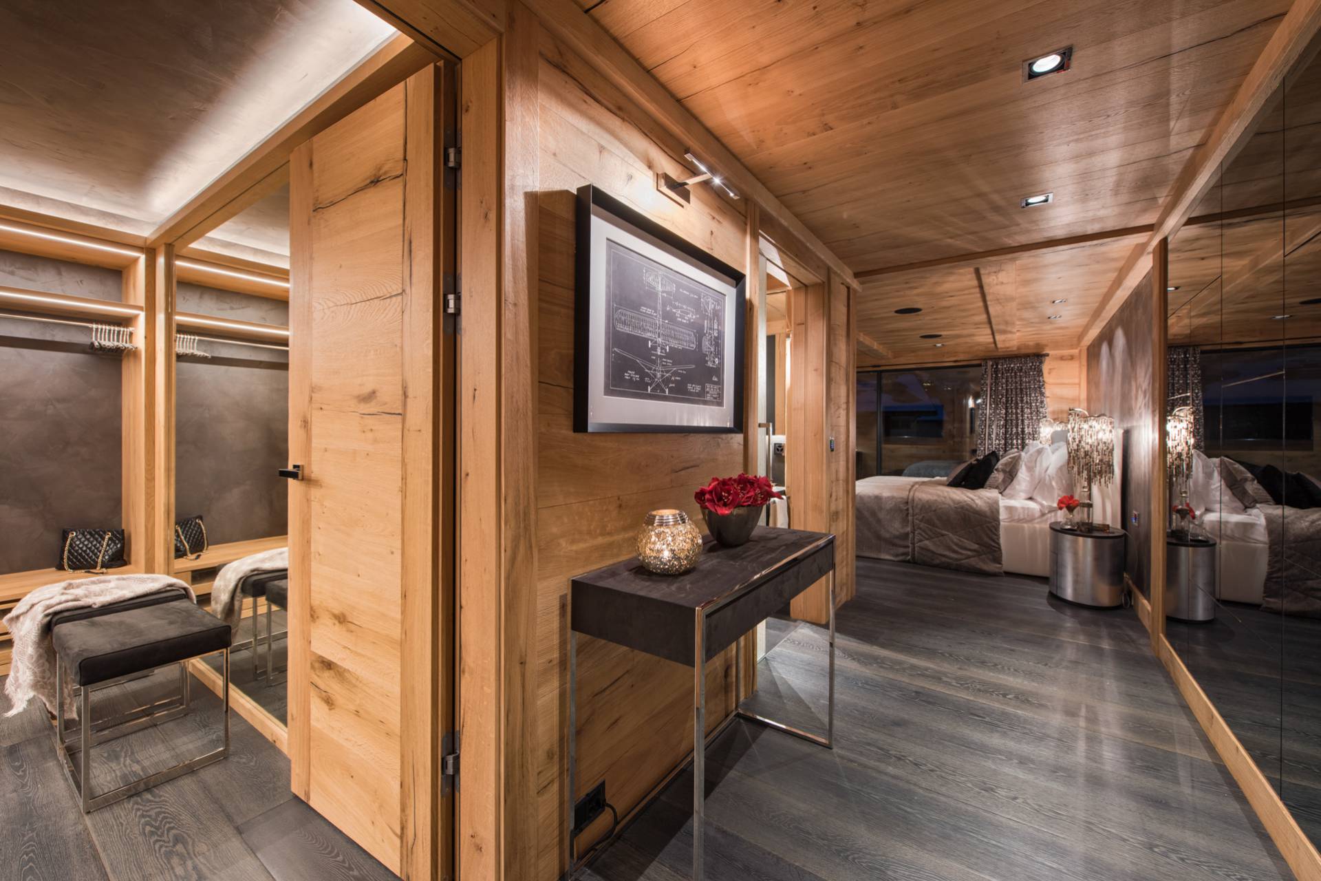 Au premier étage, vous trouverez une chambre pouvant accueillir jusqu’à quatre enfants avec une salle de douche privative, une grande chambre avec dressing, salle de bain et accès au balcon ainsi qu'une troisième chambre double avec salle de douche et autre accès au balcon. Toutes les chambres allient parfaitement au charme de la décoration alpine typique, le luxe, la sobriété et la modernité de la décoration et des matériaux utilisés.