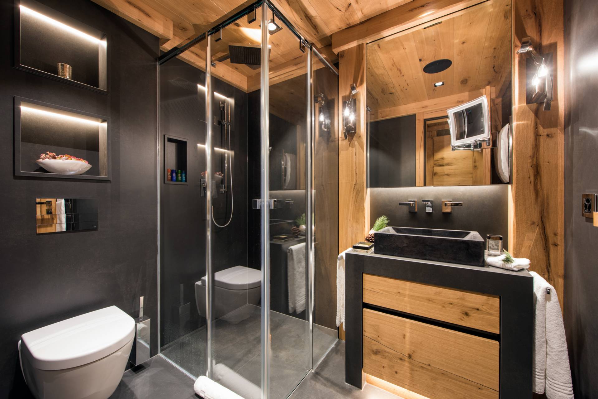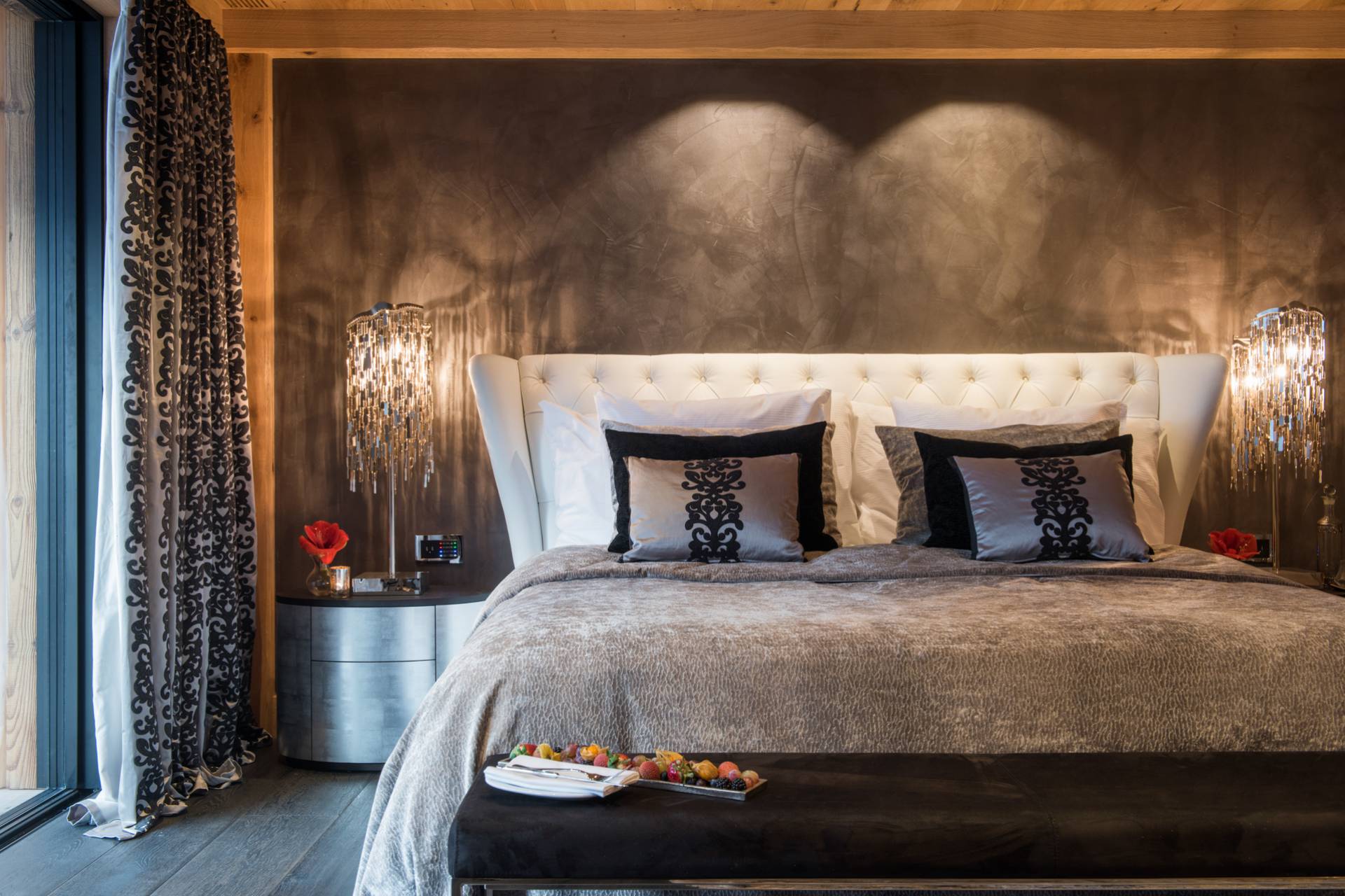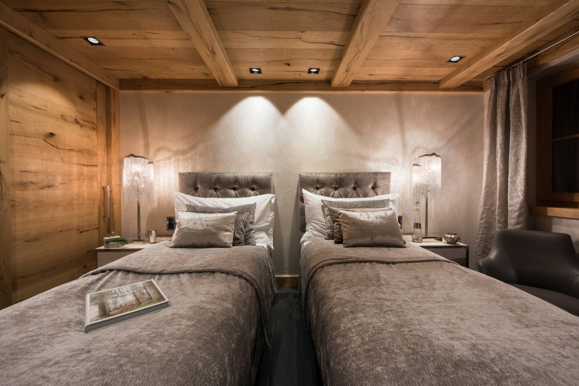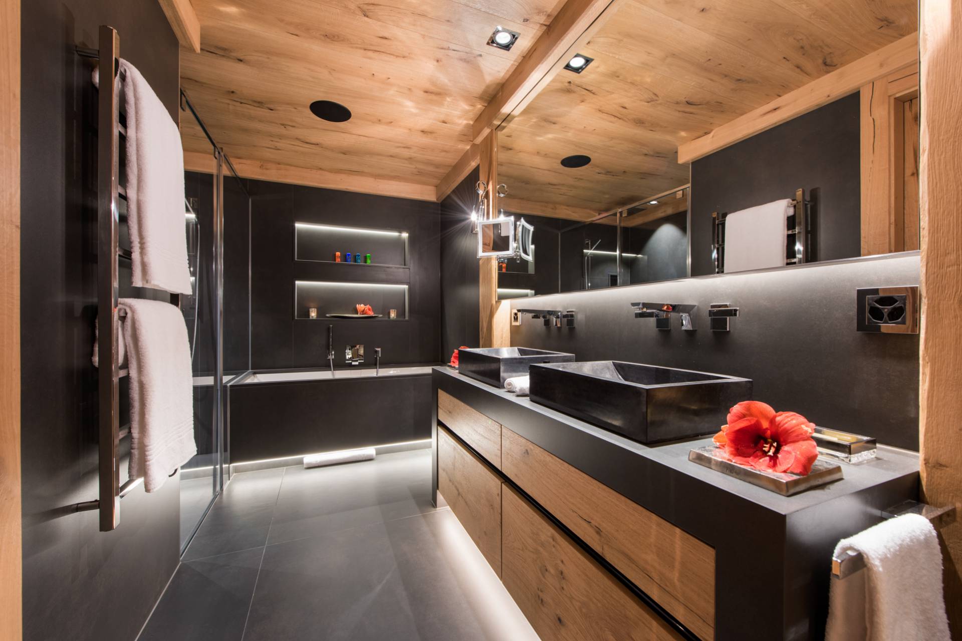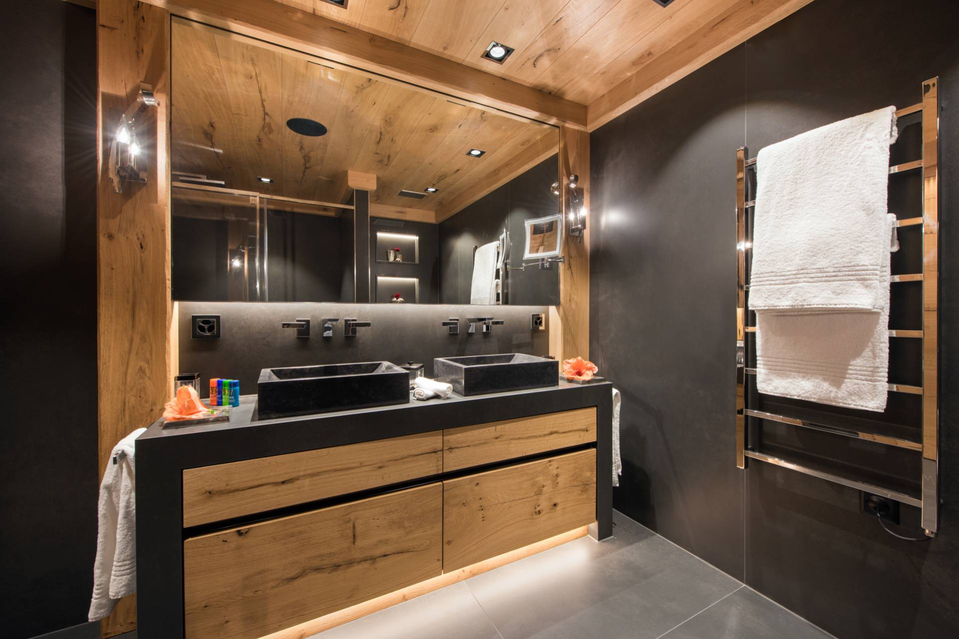 Au premier étage, vous trouverez une chambre pouvant accueillir jusqu’à quatre enfants avec une salle de douche privative, une grande chambre avec dressing, salle de bain et accès au balcon ainsi qu'une troisième chambre double avec salle de douche et autre accès au balcon. Toutes les chambres allient parfaitement au charme de la décoration alpine typique, le luxe, la sobriété et la modernité de la décoration et des matériaux utilisés.