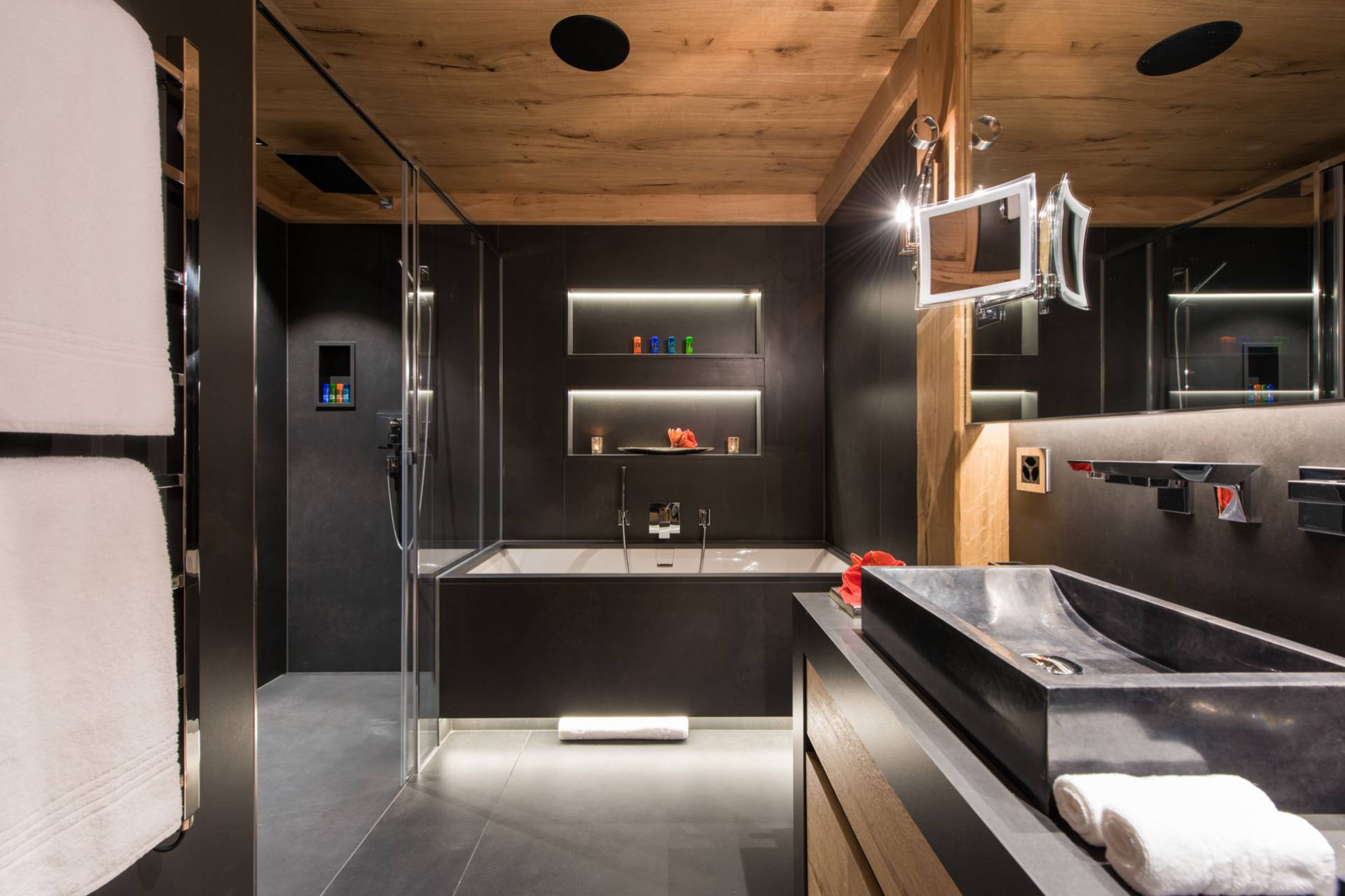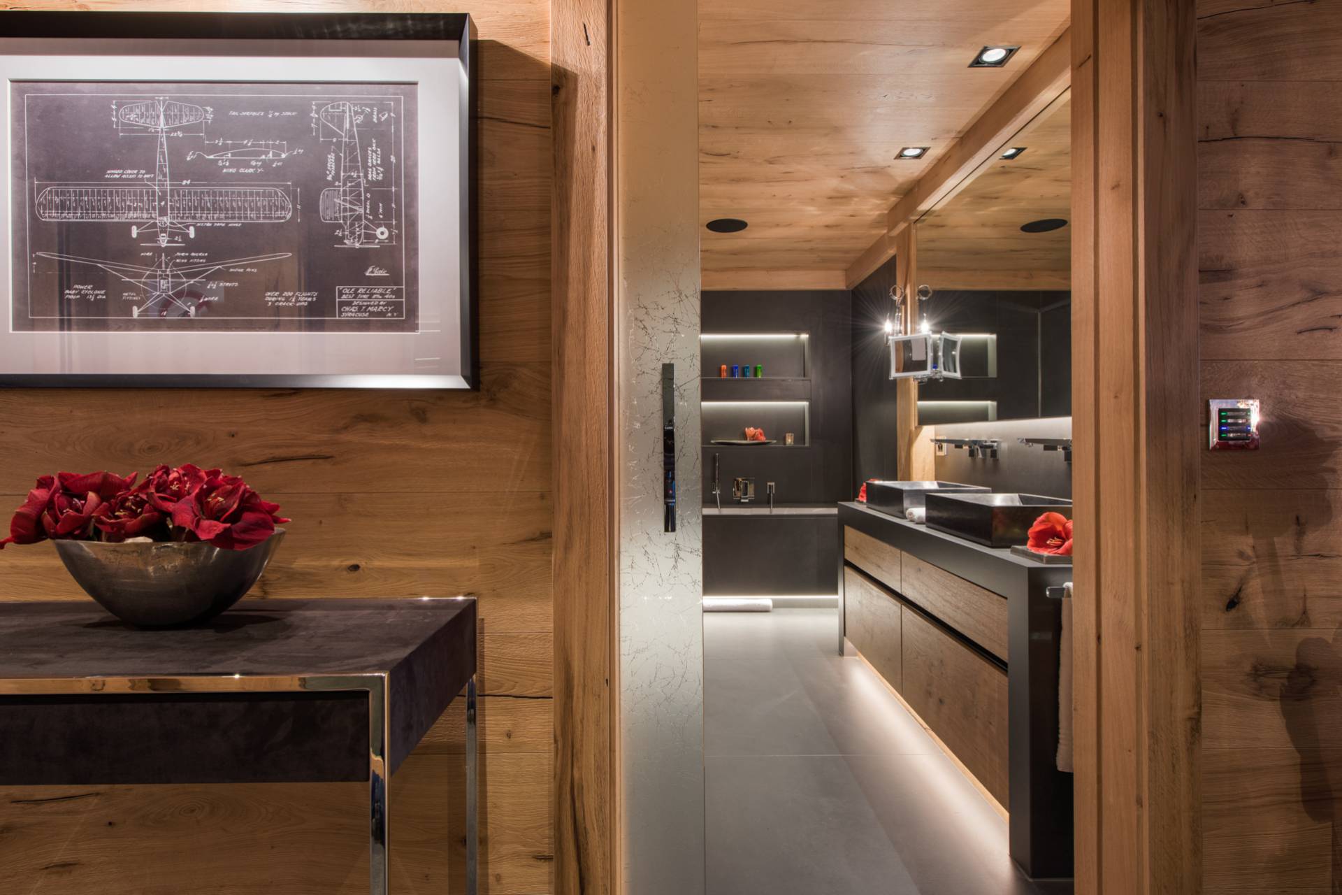 En entrant dans ce dernier, vous pourrez déposer directement tout votre matériel de ski dans un local confortable et spacieux. Un ascenseur vous fera accéder aux 550m² du chalet répartis sur 4 niveaux.
