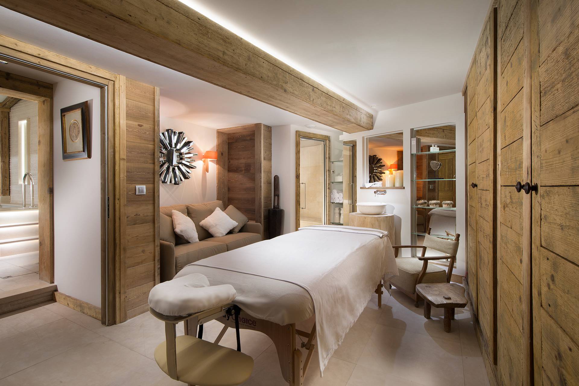 Derrière la piscine se trouve la salle de massage : l’endroit idéal pour un moment de détente dans les mains des meilleurs professionnels de Courchevel.
