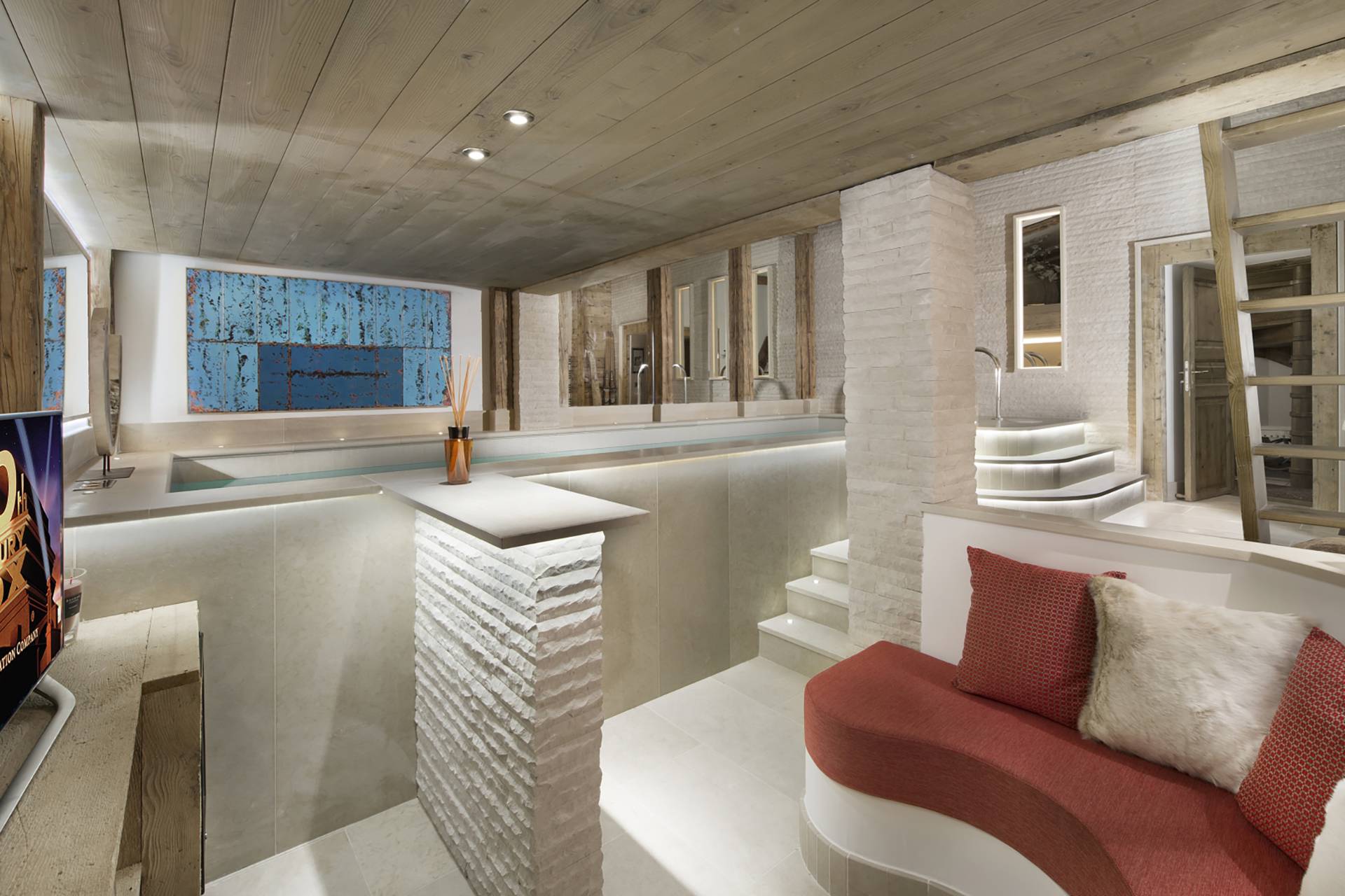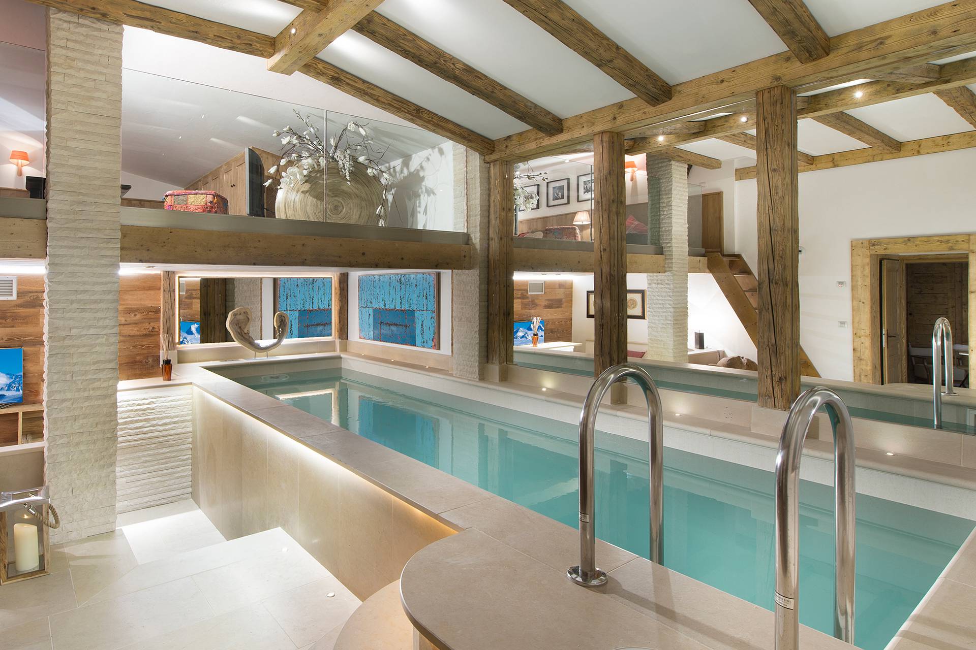 Au rez-de-chaussée se trouve une belle piscine intérieure chauffée, au style scandinave : sa longueur habille joliment la pièce aux teintes de bois. Elle est équipée d’une puissante machine à vagues ainsi que de nombreux jets d’hydrothérapie. Pour continuer dans la détente, vous pouvez également profiter d’un Hammam et de ses douces vapeurs chaudes après votre fraîche journée de ski.