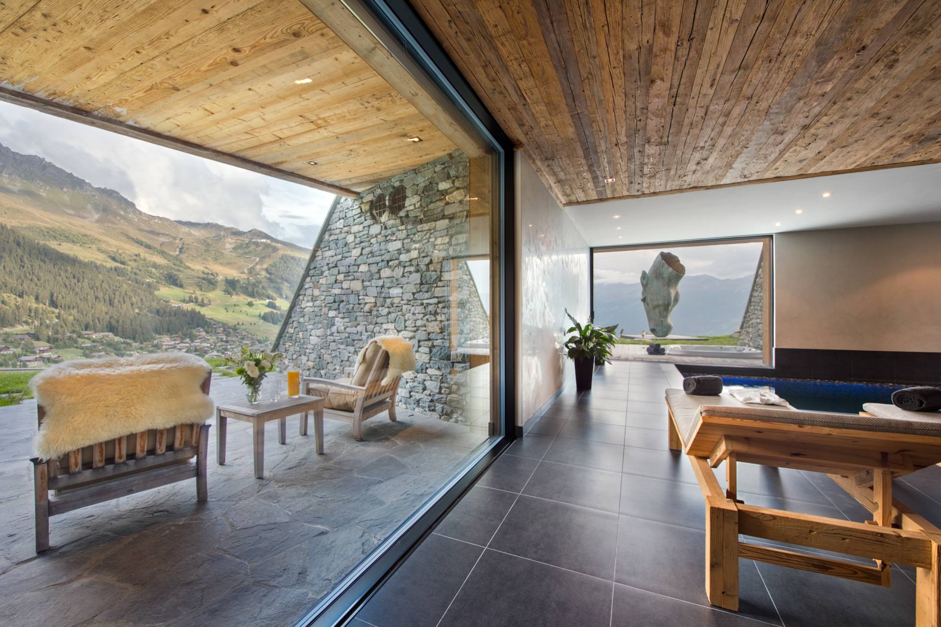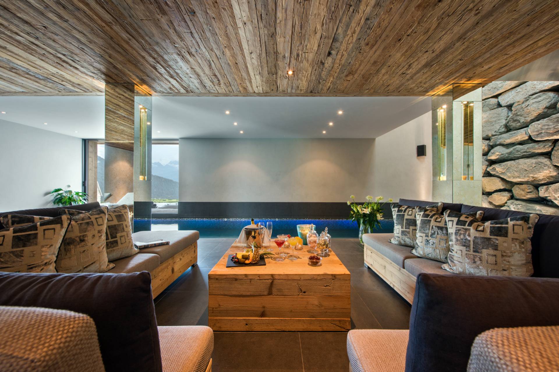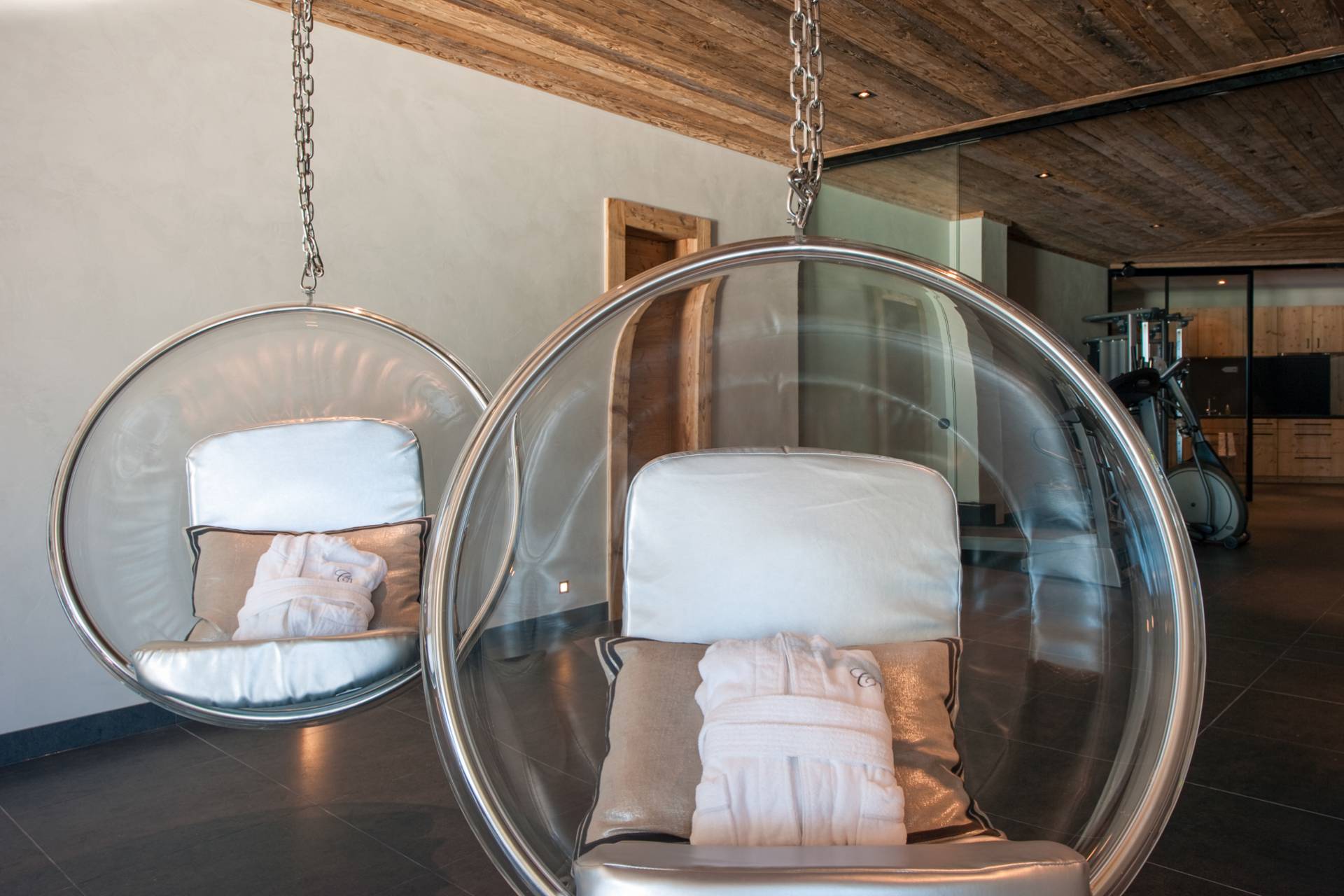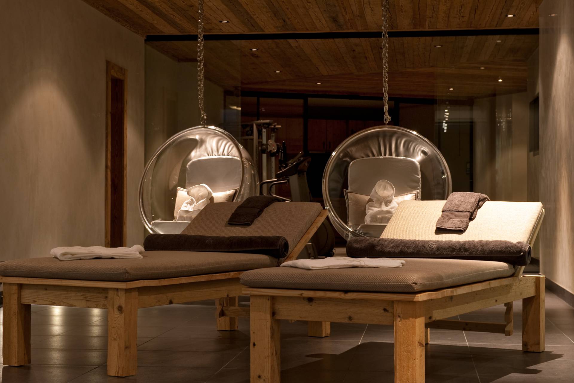 Au rez-de-chaussée, dans le magnifique spa aux touches de design finlandais des années 1960, vous aurez le choix entre la piscine intérieure, le hammam ou le sauna pour vous prélasser après le ski. Vous aurez la possibilité de vous faire masser dans l’une des quatre salles de massage du spa, regarder un film dans le salon, faire de l’exercice dans la salle de fitness, ou encore de profiter du jacuzzi extérieur devant un coucher de soleil sur les plus hautes cimes d’Europe.