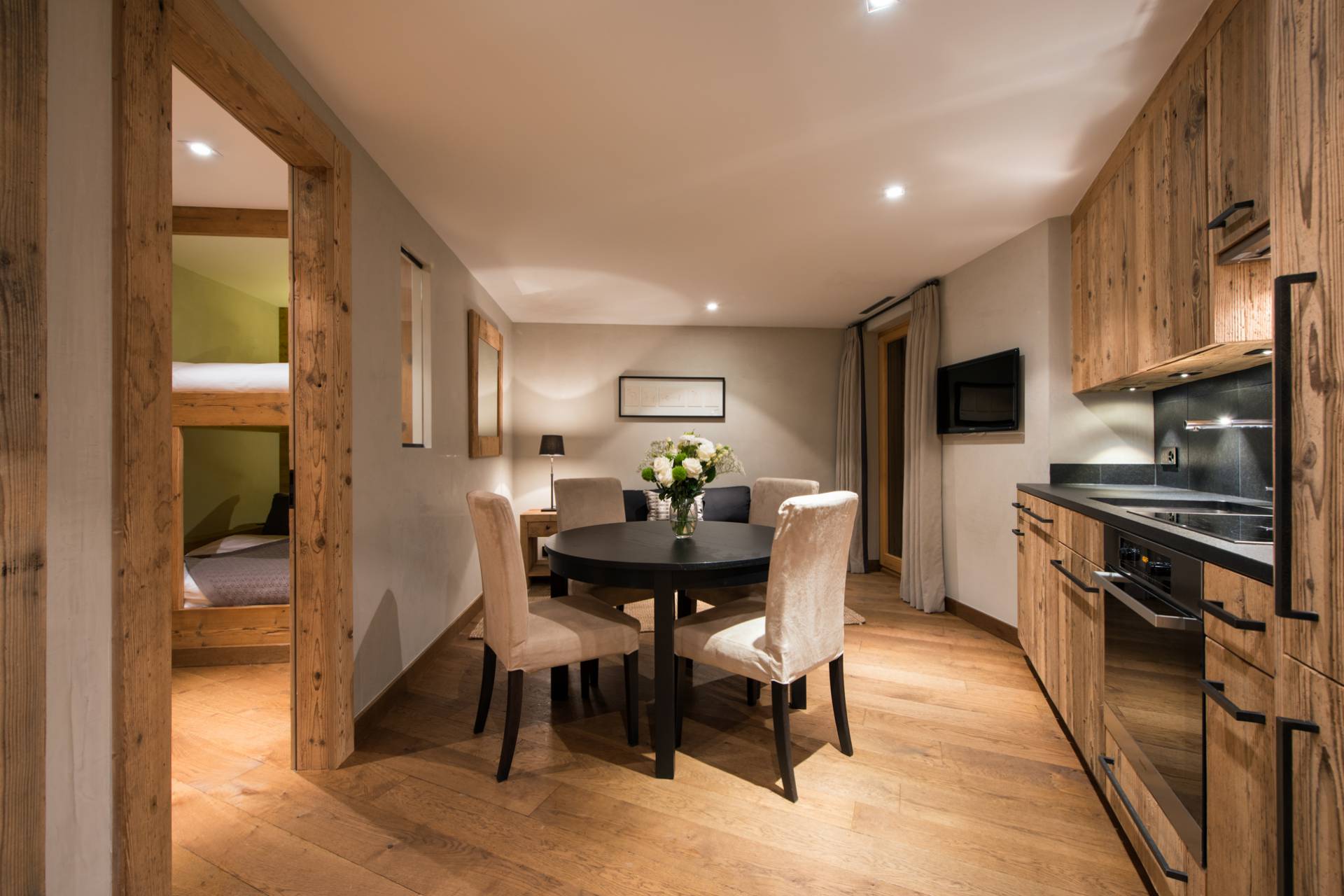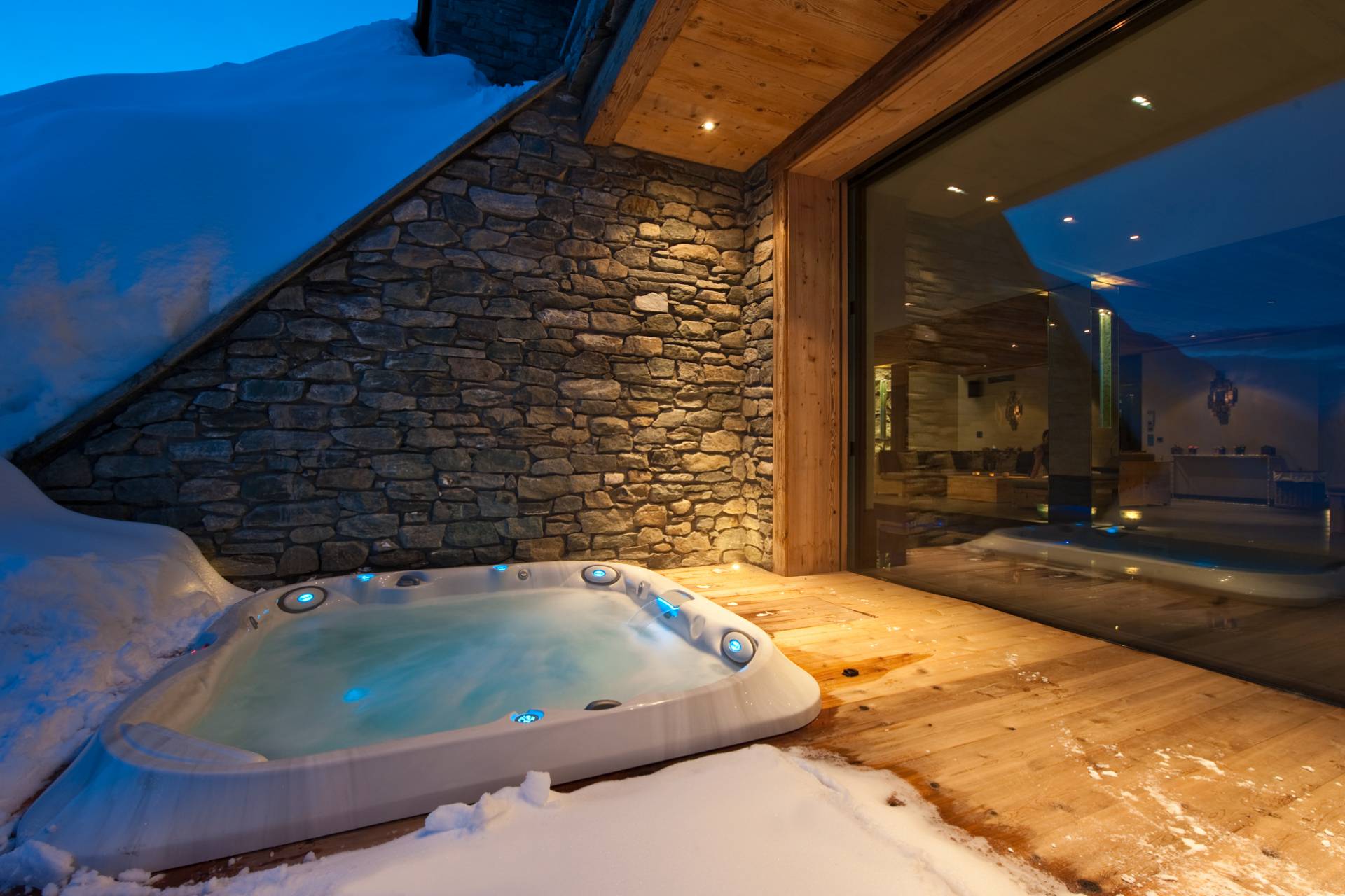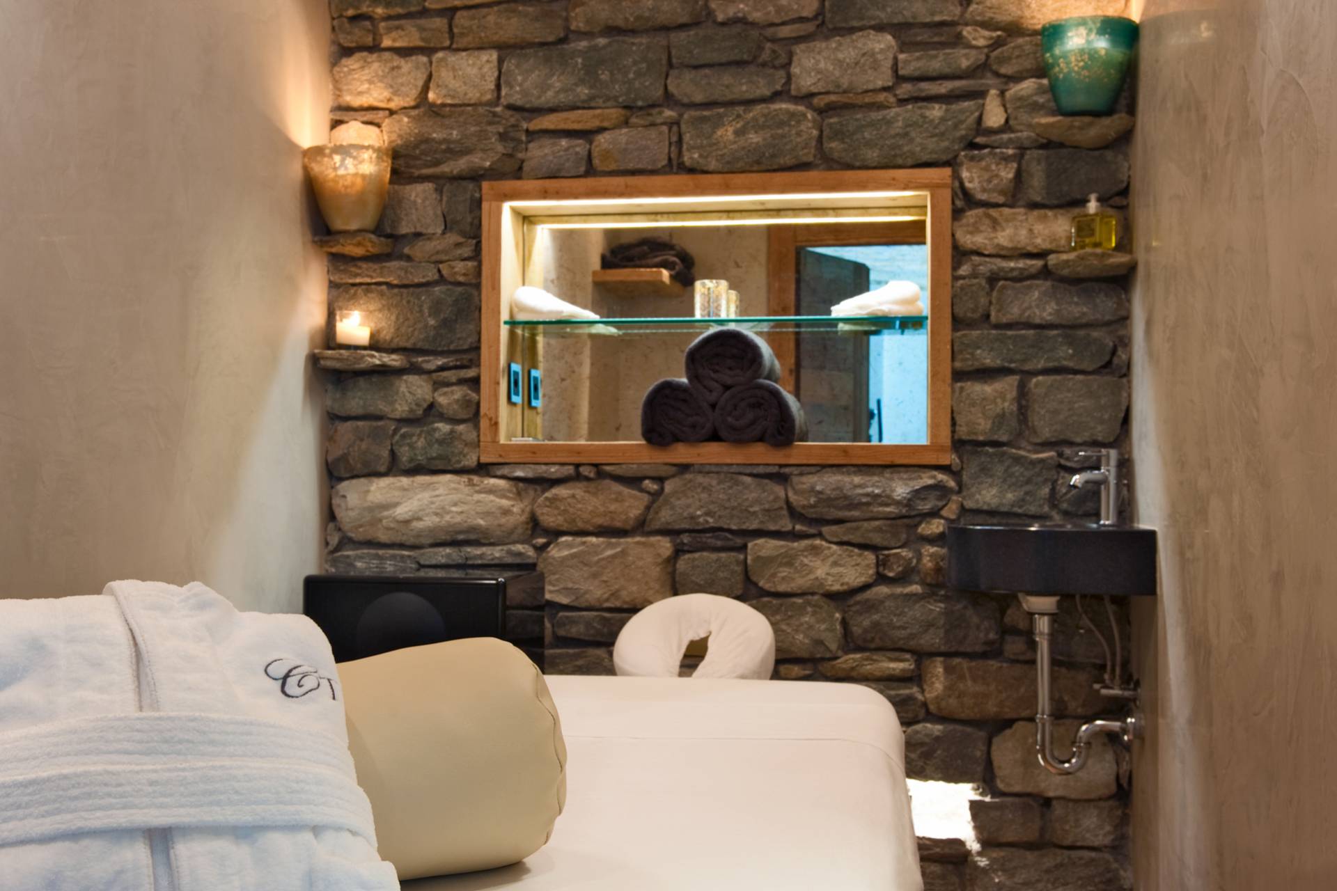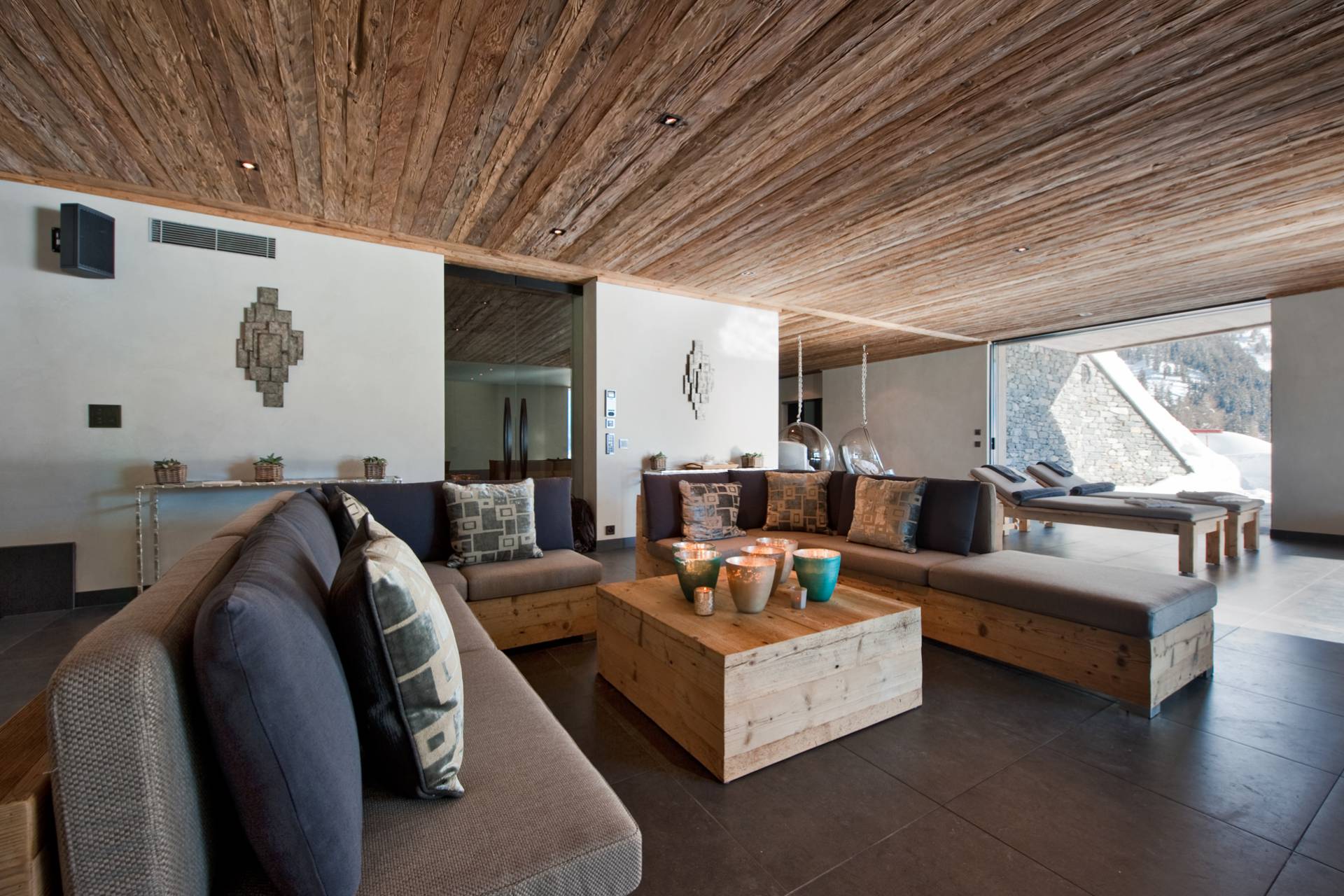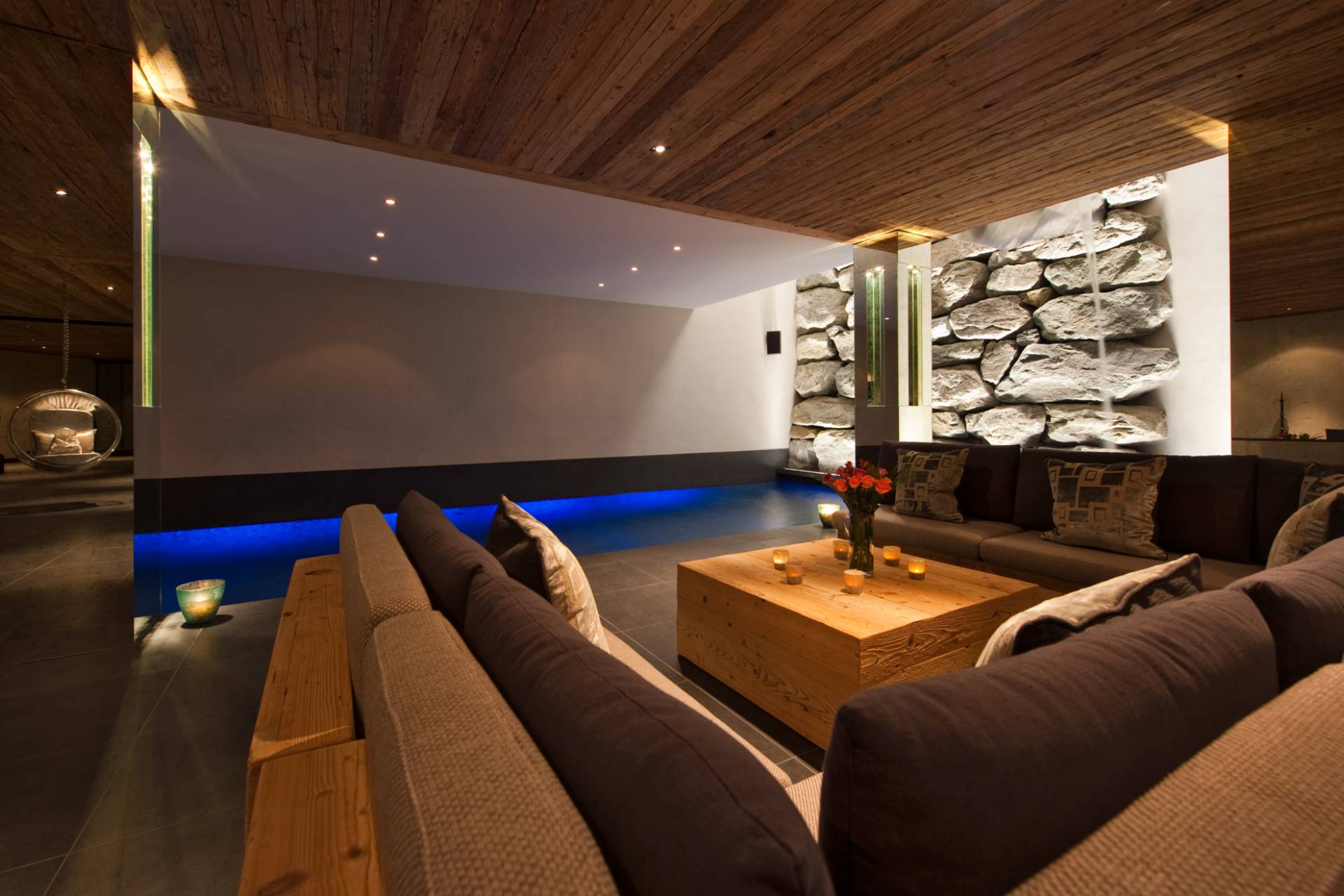 Au rez-de-chaussée, dans le magnifique spa aux touches de design finlandais des années 1960, vous aurez le choix entre la piscine intérieure, le hammam ou le sauna pour vous prélasser après le ski. Vous aurez la possibilité de vous faire masser dans l’une des quatre salles de massage du spa, regarder un film dans le salon, faire de l’exercice dans la salle de fitness, ou encore de profiter du jacuzzi extérieur devant un coucher de soleil sur les plus hautes cimes d’Europe.
