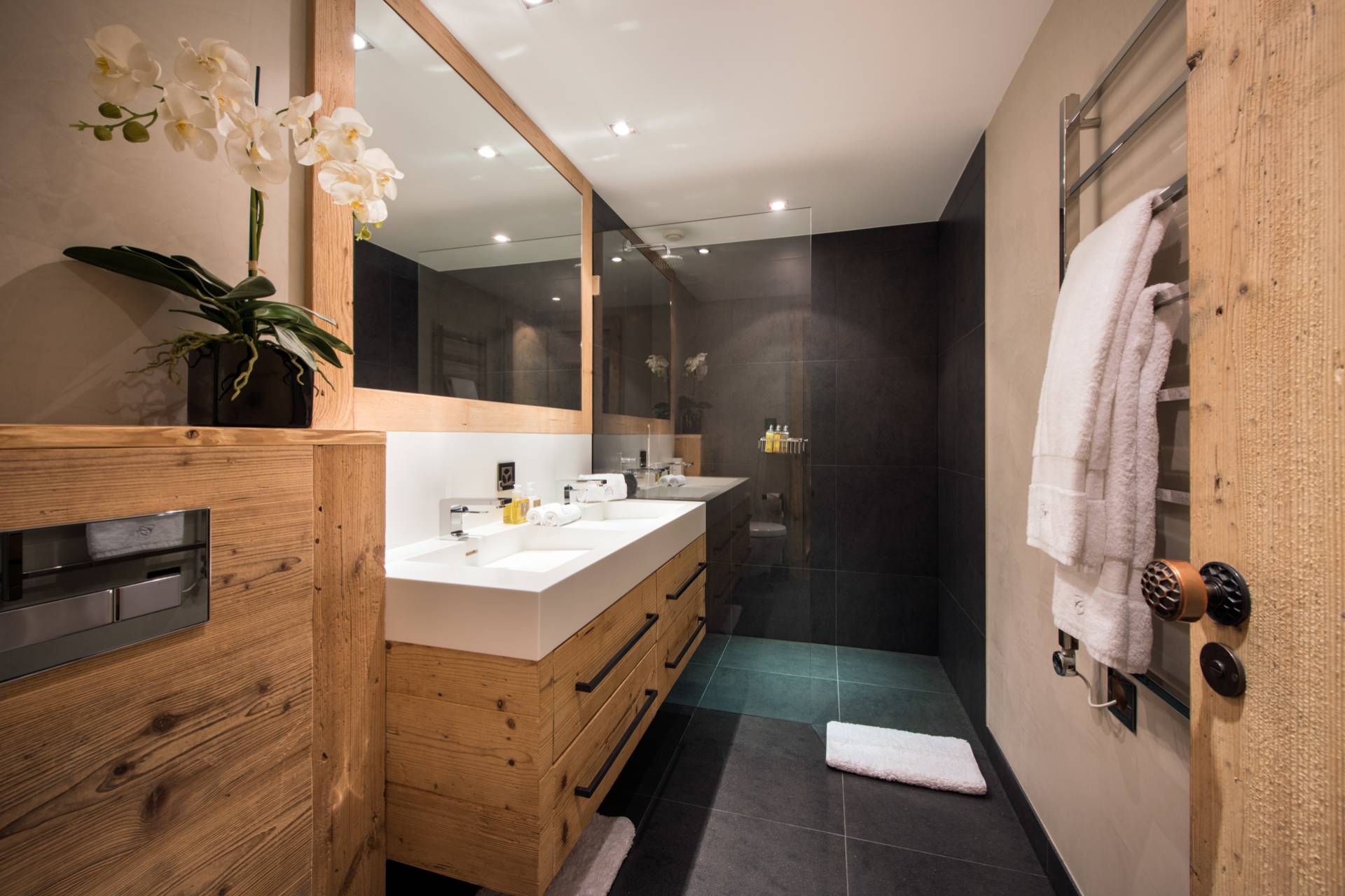La spacieuse suite parentale au 3e étage couronne ce joyau de l’architecture alpine, avec son balcon privatif, sa salle de bain avec douche et baignoire et son grand dressing. Que ce soit la beauté de la nature environnante vous faisant face depuis votre lit King size, ou l’un des tableaux de maître de cette demeure, tout invite dans cette pièce à la contemplation.