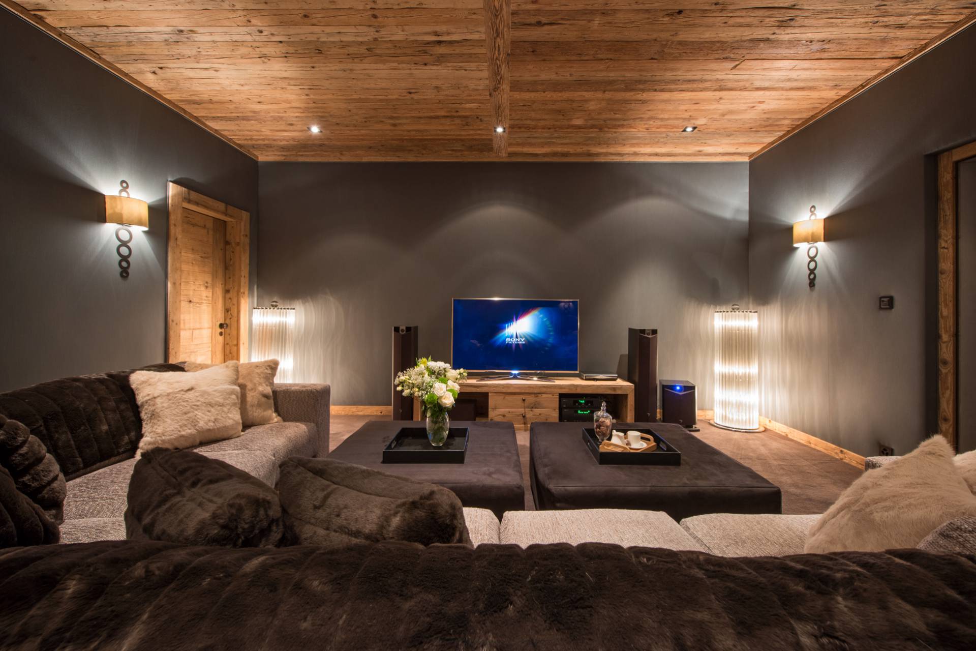 Vous apprécierez dans cette demeure luxueuse de 1000 m2 pour douze à quatorze personnes ses vastes volumes, le confort de son aménagement intérieur alliant design et respect d’un artisanat alpin de qualité et ses équipements impressionnants (spa, salle de sport, ascenseur, suite parentale, studio).